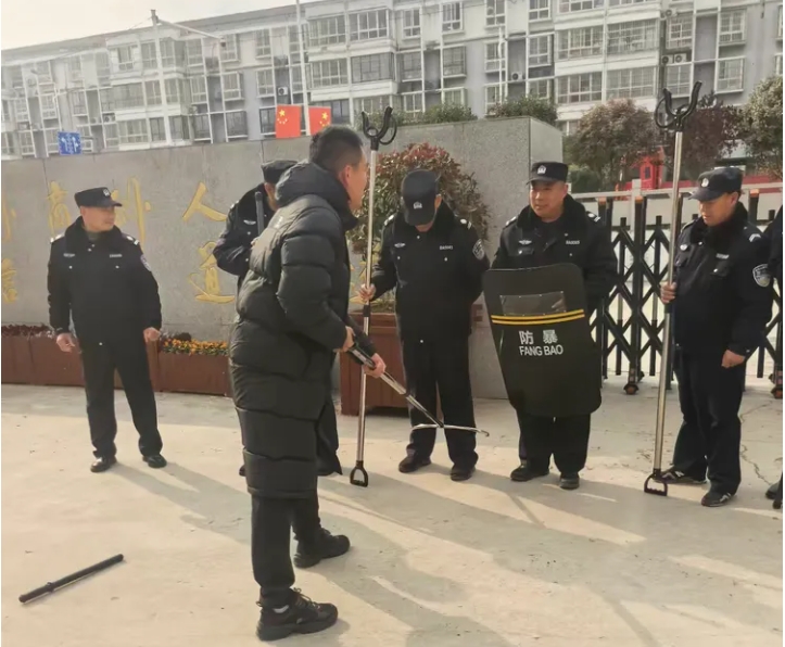 學(xué)校學(xué)校關(guān)工委特邀請學(xué)校安保主任現(xiàn)場詳細(xì)講解了遭遇突發(fā)暴恐襲擊時注意事項(xiàng),并逐一講解演示盾牌、鋼叉等防暴器械的正確使用方法,安保人員進(jìn)行現(xiàn)場實(shí)操,提升了防暴技能。