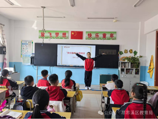 “責任是什么”主題班會上,教師組織學生探討古今中外責任故事,結合校園、家庭場景引導責任判斷;各班精心設計責任主題黑板報,學生積極創(chuàng)作手抄報,營造出濃厚的責任教育氛圍;主題演講比賽中,學生們分享在校園責任崗位、家務勞動、社區(qū)志愿服務中的經歷與感悟,展現責任意識的成長。