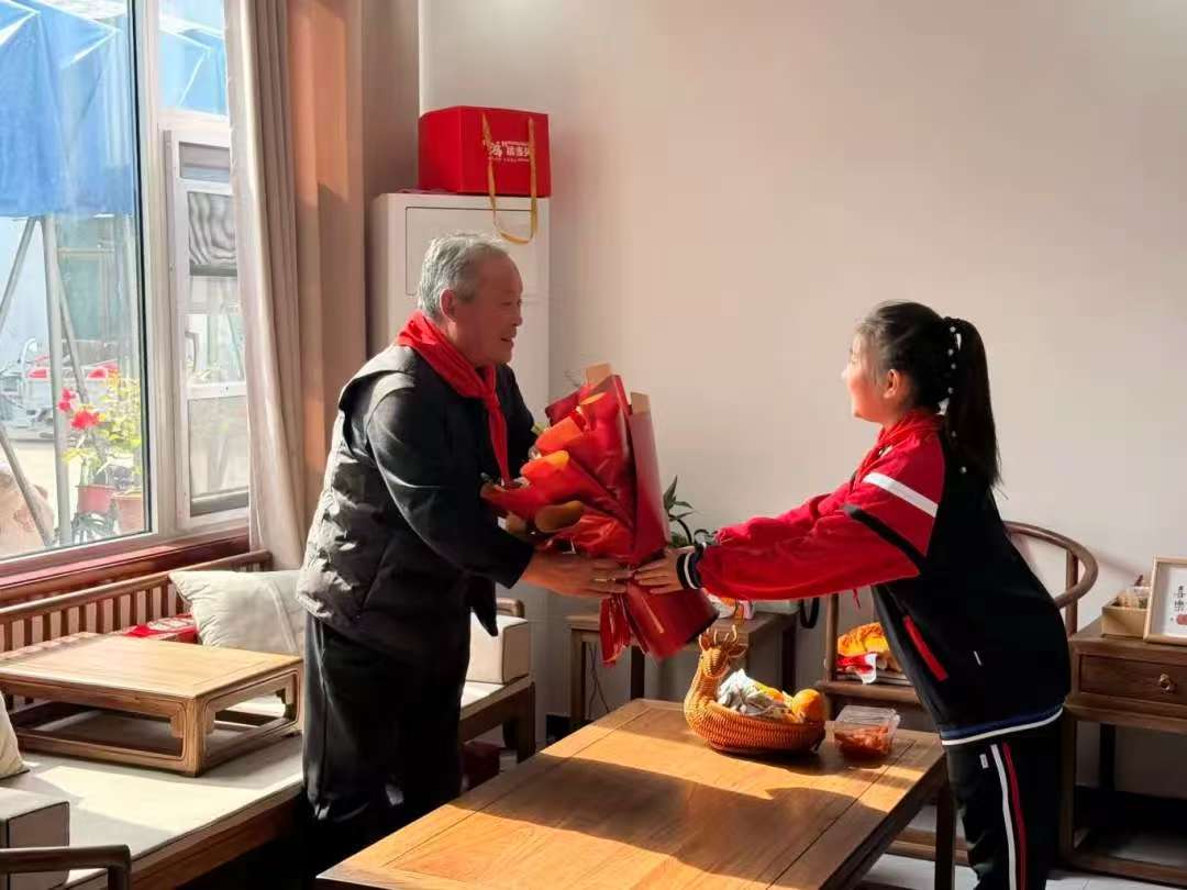 重陽節(jié),是承載尊老敬老傳統(tǒng)美德的重要節(jié)日;老兵,是鐫刻國(guó)家與民族記憶的功勛脊梁。為傳承紅色基因,弘揚(yáng)中華優(yōu)秀傳統(tǒng)美德,落實(shí)立德樹人根本任務(wù),山東省臨沂市河?xùn)|區(qū)八湖鎮(zhèn)柴河小學(xué)少先隊(duì)大隊(duì)在中心校黨支部的引領(lǐng)下,于2025年10月29日上午組織13名少先隊(duì)員代表及柴河小學(xué)校長(zhǎng)、大隊(duì)輔導(dǎo)員、中隊(duì)輔導(dǎo)員老師,開展了“情暖重陽 致敬英雄”暨慰問老兵張現(xiàn)生爺爺?shù)闹黝}教育。