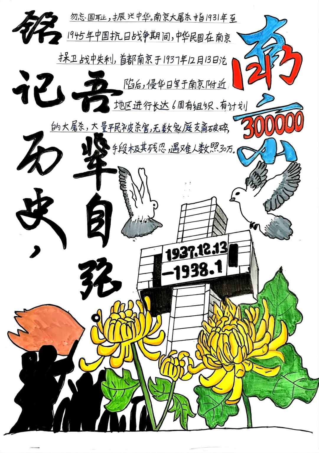 “三十余萬(wàn),生靈涂炭,煉獄六周,哀哉國(guó)殤?!敝黝}班會(huì)的課堂上,老師們沉重地講述著南京大屠殺的歷史真相,圖文并茂的呈現(xiàn),讓字字句句都叩擊著每一位學(xué)生的心靈。那段山河破碎、同胞受難的過(guò)往,不再是書(shū)本上冰冷的文字,而是化作直擊內(nèi)心的震撼,讓學(xué)生們真切懂得和平的珍貴。