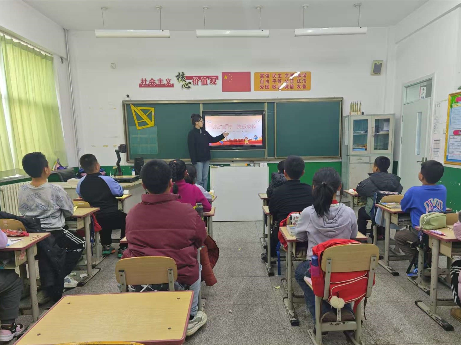 工作人員圍繞“什么是憲法”“憲法日的由來(lái)”“憲法與我們每個(gè)人的關(guān)系”等問(wèn)題,用通俗易懂的語(yǔ)言向?qū)W生們?cè)敿?xì)講述了憲法的地位、作用和主要內(nèi)容等方面的知識(shí)。隨后又結(jié)合學(xué)生們的心理特點(diǎn)和接受能力,以案釋法深入淺出地講解了《未成年人保護(hù)法》《民法典》等法律法規(guī),讓學(xué)生們了解了防范校園欺凌、交通安全、消防安全以及反詐騙等多方面的法律知識(shí),引導(dǎo)學(xué)生們?cè)鰪?qiáng)防范和自我保護(hù)能力,努力讓?xiě)椃ㄒ庾R(shí)和法制觀念從小在孩子們心里扎根,成長(zhǎng)為心中有“憲”、知法守法的合法公民。