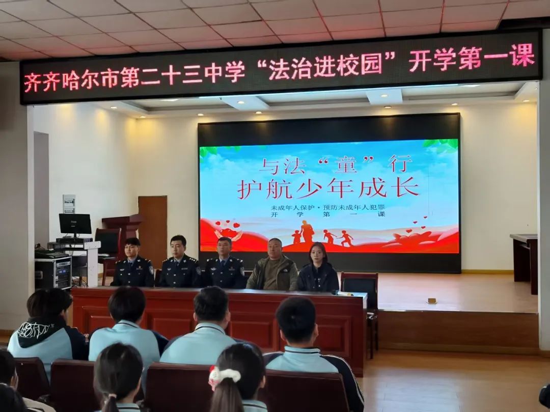 6月24日,黑龍江省齊齊哈爾市昂昂溪區(qū)公安分局組織法治副校長(zhǎng)走進(jìn)轄區(qū)中小學(xué),開展“法治護(hù)航成長(zhǎng),共筑平安校園”主題宣講活動(dòng),以案例講解、互動(dòng)問(wèn)答等多種方式,為師生送上法治“安全錦囊”,掀起校園“學(xué)法、守法、用法”熱潮。