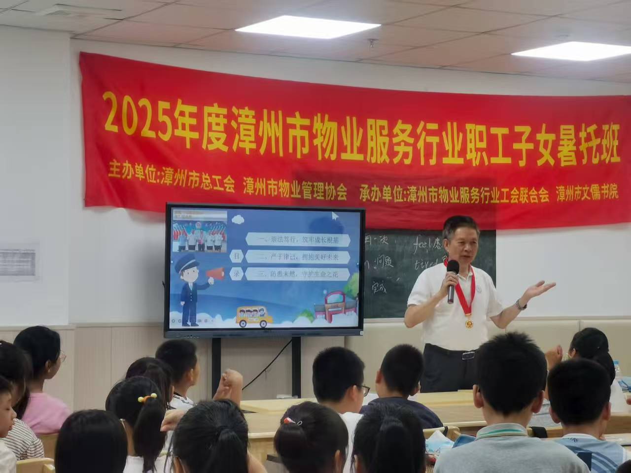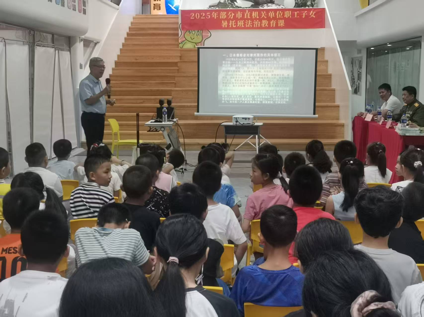 課堂上,老同志們各展所長,帶來別開生面的課程。市關(guān)工委副主任陳青樹以《法律護(hù)航健康成長——做知法守法小公民》為題,結(jié)合青少年易接觸的案例,用通俗語言講解法律知識,教孩子們明辨是非界限;副主任何池則以《抗戰(zhàn)時期日寇對漳州人民犯下的滔天罪行暨漳州抗日英雄譜》為主線,通過本地抗戰(zhàn)故事喚起孩子們的家國記憶,讓孩子們心中的愛國之情油然而生,激蕩起深沉而熾熱的家國情懷;對越自衛(wèi)反擊戰(zhàn)二級戰(zhàn)斗英雄馬國民的“保家衛(wèi)國”故事;老檢察官劉福成的“品學(xué)兼優(yōu)”囑托、市直政法系統(tǒng)關(guān)工委常務(wù)副主任沈迪輝的“平安成長”提醒。他們先后到市直機(jī)單位、市物業(yè)服務(wù)行業(yè)等7個職工子女暑托班,形成系列教育課堂。