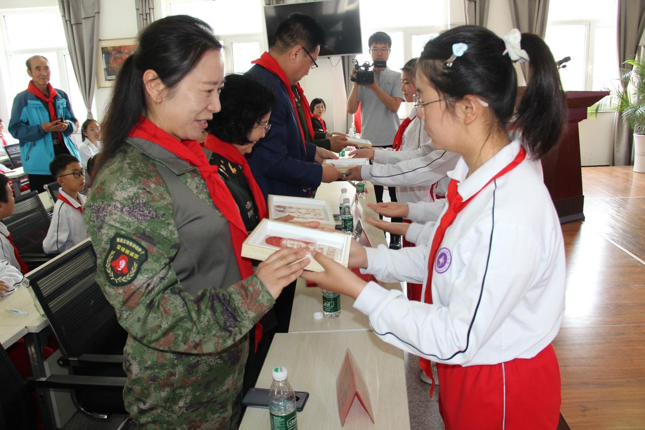 隨后,群力小學(xué)、東風(fēng)小學(xué)校領(lǐng)導(dǎo)為孫桂琴頒發(fā)名譽(yù)校長聘書,表達(dá)對她一生傳承雷鋒精神的誠摯敬意。“雷鋒朗誦團(tuán)”衛(wèi)丹團(tuán)長、石海濱政委授予兩所小學(xué)“雷鋒朗誦團(tuán)”稱號牌匾及團(tuán)旗,兩所學(xué)校莊重地接過牌匾和團(tuán)旗,意味著雷鋒精神將進(jìn)一步在校園中發(fā)揚與傳承。于洋老師在致詞中,向廣大師生們發(fā)出“攜手共進(jìn),以雷鋒為榜樣,讓雷鋒精神在新時代煥發(fā)出更加耀眼的光芒”的號召。學(xué)生代表向特邀嘉賓贈送了精心制作的雷鋒形象非遺竹編畫,竹編畫工藝精美,飽含著學(xué)生們對嘉賓的尊敬和對雷鋒精神的熱愛。