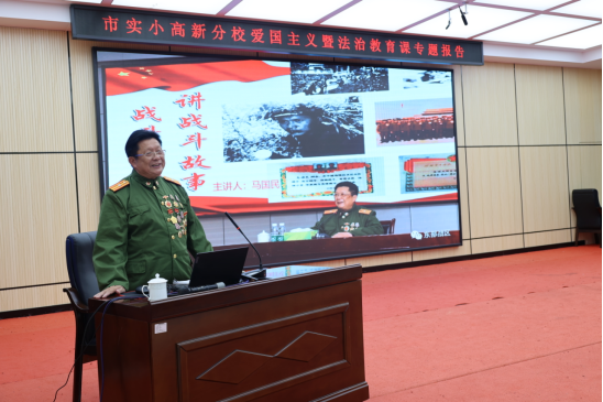 活動(dòng)伊始,陳青樹團(tuán)長(zhǎng)在講話中傳遞了對(duì)青少年成長(zhǎng)的深切關(guān)懷,勉勵(lì)同學(xué)們從小樹立愛國(guó)情懷,筑牢法制觀念,為成長(zhǎng)為擔(dān)當(dāng)民族復(fù)興大任的時(shí)代新人打好堅(jiān)實(shí)基礎(chǔ)。隨后,馬國(guó)民以《自衛(wèi)反擊保邊疆,不畏生死鑄軍魂》為題,用親身經(jīng)歷還原烽火歲月,將“不畏生死、守護(hù)家國(guó)”的英雄情懷融入生動(dòng)敘事,讓學(xué)子們真切感悟和平生活的來(lái)之不易,推動(dòng)紅色基因代代相傳。沈迪輝則以《遵紀(jì)守法記心間 健康成長(zhǎng)伴一生》為題,結(jié)合校園生活典型案例,講授自我保護(hù)、明辨是非的法律知識(shí),為學(xué)生筑牢安全成長(zhǎng)的“法治鎧甲”。