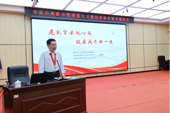 10月21日下午,漳州市關(guān)工委聯(lián)合市直政法系統(tǒng)關(guān)工委,在市實(shí)驗(yàn)小學(xué)高新區(qū)分校舉辦愛國(guó)主義暨法治教育專題課,市關(guān)工委副主任、關(guān)愛團(tuán)團(tuán)長(zhǎng)陳青樹,關(guān)愛團(tuán)副團(tuán)長(zhǎng)、市直政法系統(tǒng)關(guān)工委常務(wù)副主任、全國(guó)青少年普法教育優(yōu)秀輔導(dǎo)員沈迪輝,對(duì)越自衛(wèi)反擊戰(zhàn)一等功臣、二級(jí)戰(zhàn)斗英雄馬國(guó)民,市直政法系統(tǒng)關(guān)工委副主任廖金虎及高新區(qū)關(guān)工委、區(qū)團(tuán)工委代表,市實(shí)小高新分校領(lǐng)導(dǎo)、教師、高年級(jí)學(xué)生代表200余人現(xiàn)場(chǎng)聆聽學(xué)習(xí),共同接受精神洗禮與法治熏陶。