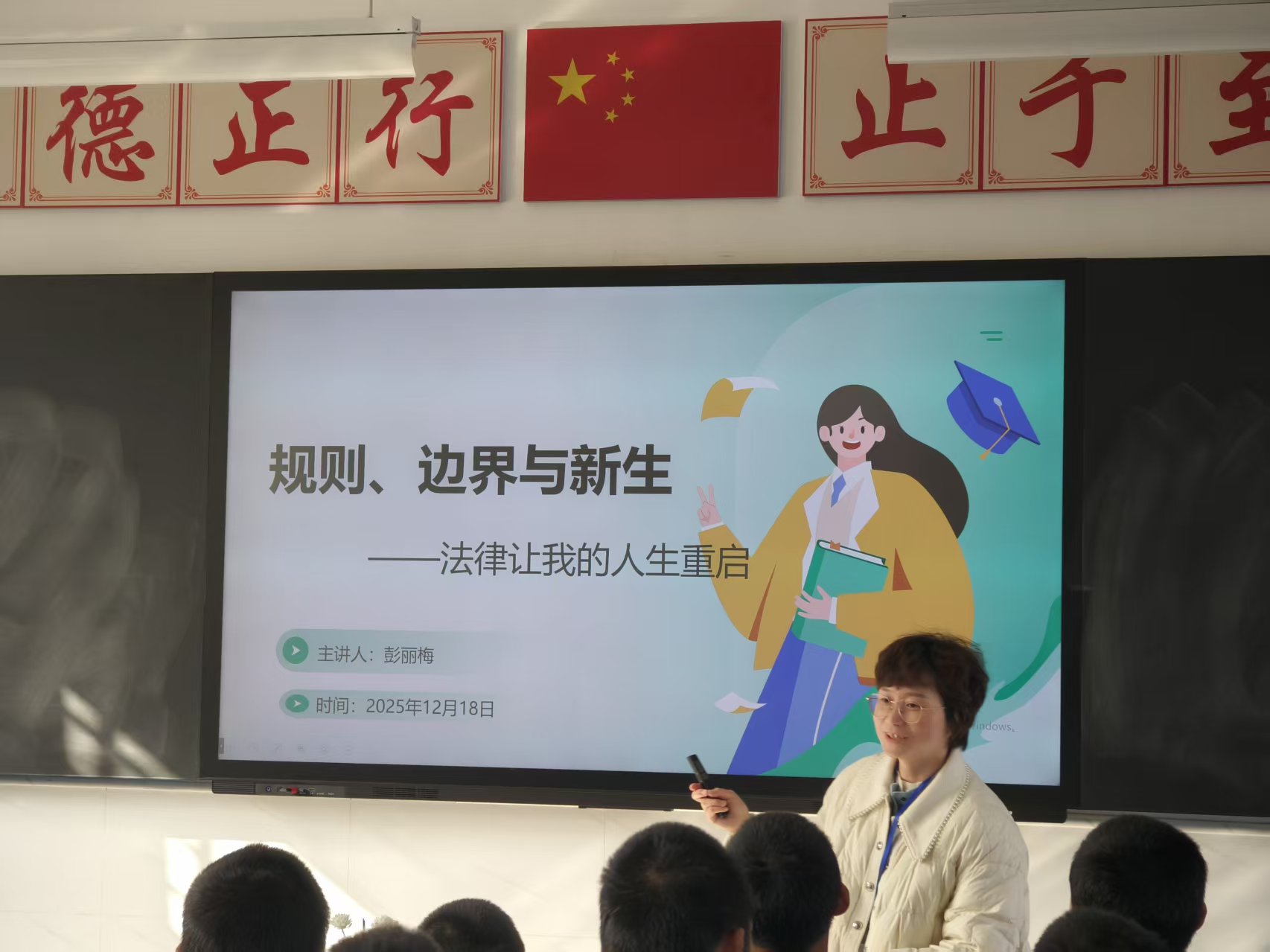 課堂上,彭麗梅副團(tuán)長結(jié)合真實(shí)案例以案釋法,用通俗易懂的語言講解法律知識(shí)與人生成長的關(guān)聯(lián)。這些故事如同一面面鏡子,讓在場(chǎng)的48名學(xué)生看到了多面向的人生可能。當(dāng)被問及“法律與你想象中的有何不同”時(shí),一只只手高高舉起?!拔乙郧坝X得法律是冰冷的手銬,”一名學(xué)生坦率分享,“今天明白了,它更像是堅(jiān)固的欄桿,保護(hù)我們不會(huì)從成長的橋上跌落。”這種認(rèn)知的轉(zhuǎn)變令人動(dòng)容。