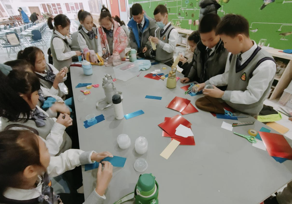 在輕松愉悅的課堂上,孩子們與研學教師共同探索家鄉(xiāng)的傳統(tǒng)文化知識,運用“古法”技藝制作滿族傳統(tǒng)美食——黏豆包。在課堂上研學教師向孩子們介紹了滿族傳統(tǒng)游戲“歘嘎啦哈”的起源和規(guī)則。最后,同學們制作了屬于自己的光學玩具“萬花筒”。