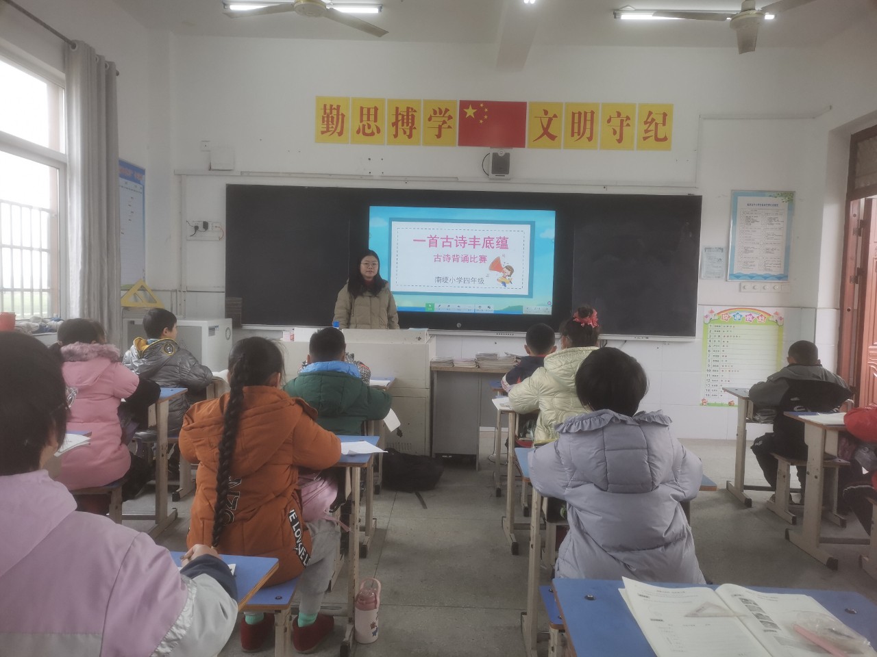 1月4日,池州市東至縣大渡口鎮(zhèn)南埂小學(xué)關(guān)工委組織開展“一首古詩豐底蘊(yùn)”經(jīng)典古詩詞誦讀活動,弘揚(yáng)中華優(yōu)秀傳統(tǒng)文化,豐富校園文化生活,引導(dǎo)師生增強(qiáng)學(xué)生文化自信。