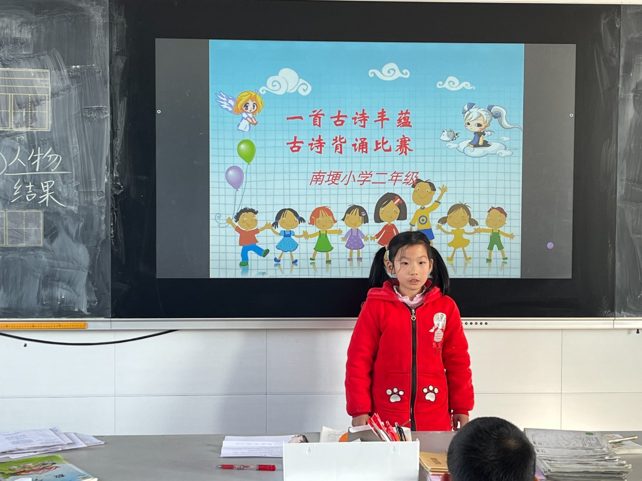 比賽過程中,參賽選手精神飽滿,他們用洪亮的聲音,真摯的情感,自信地背誦著一首首古詩,一首首經(jīng)典,在平高仄低的吟誦中,顯得是那樣的古韻悠揚(yáng),余音渺渺。一首首經(jīng)典詩詞,猶如一道道精致的甜品,甜蜜了一位位南埂小學(xué)學(xué)子的心田。