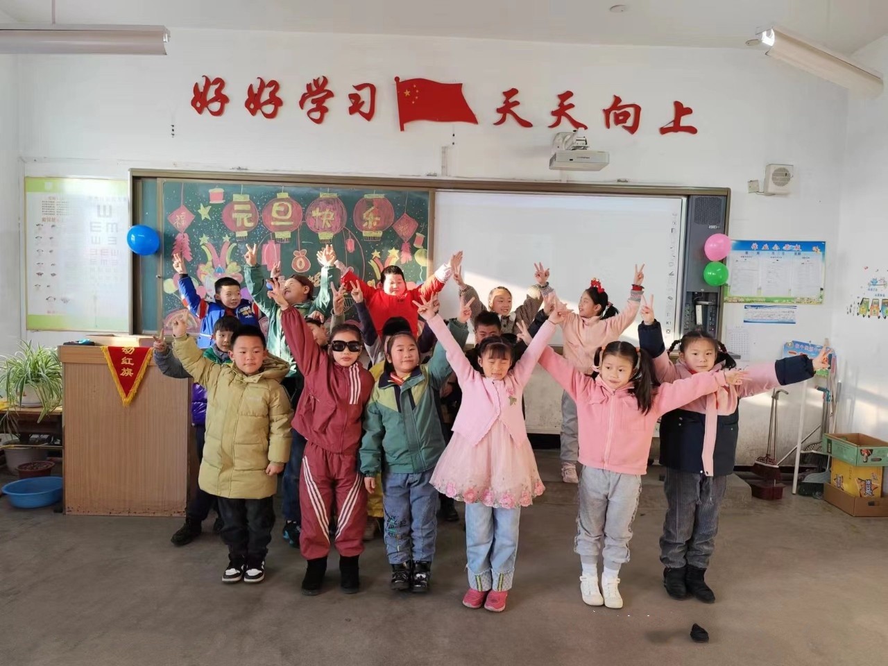 為烘托節(jié)日氣氛,各班精心布置本班教室,紅彤彤的燈籠、彩色的氣球、精美的拉花都蘊含著濃郁的新年氣氛。