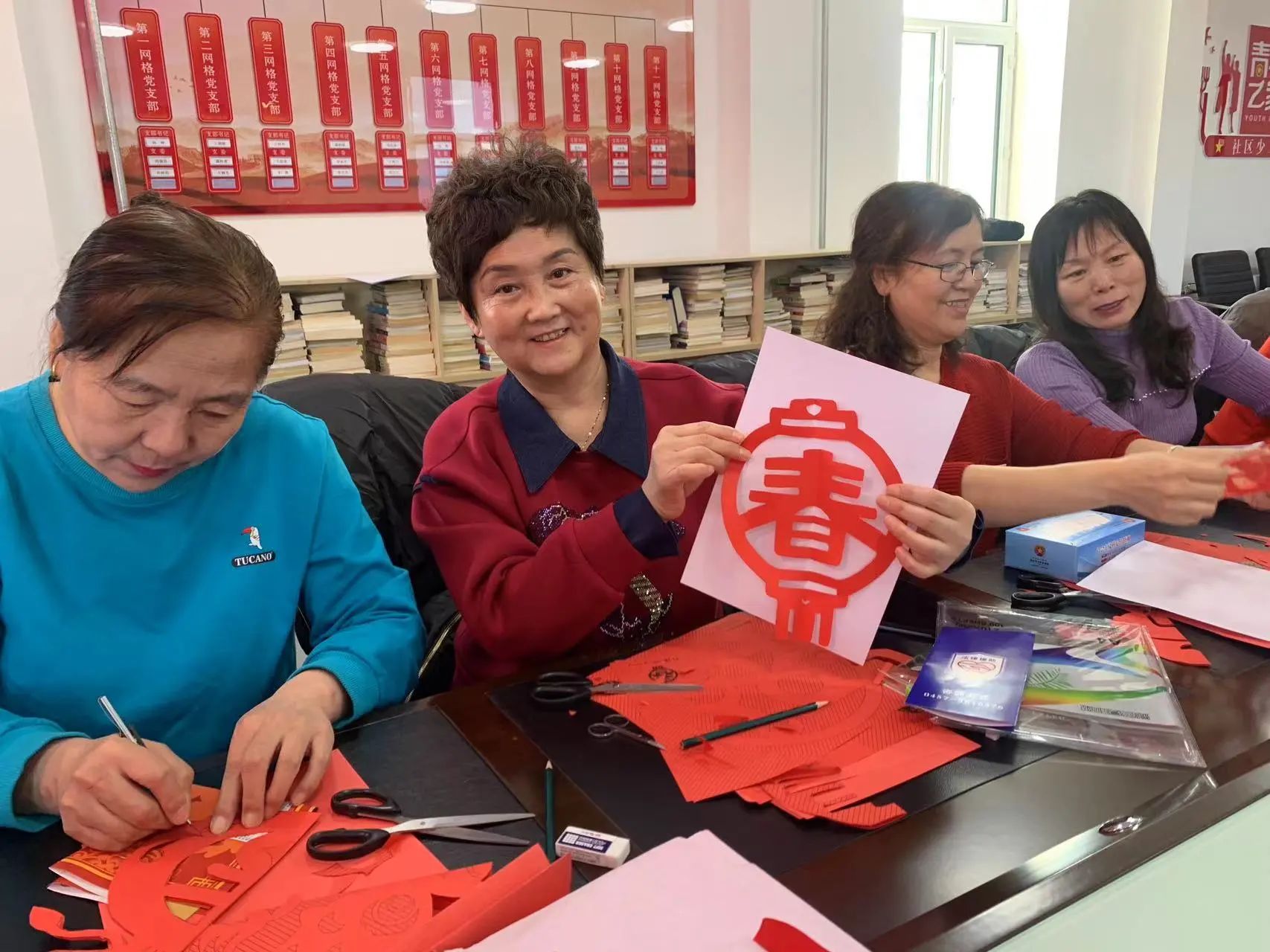 1月25日,開(kāi)展“弘揚(yáng)傳統(tǒng)文化 巧手剪窗花”活動(dòng),吸引了眾多“五老”前來(lái)參加?;顒?dòng)中,參與者從折紙、標(biāo)記線條、比例控制、運(yùn)刀技巧等方面進(jìn)行認(rèn)真的折紙、劃線,“五老”們發(fā)揮自己的想象力和創(chuàng)造力,運(yùn)用刻刀和剪刀,一張張形狀各異的窗花在她們的手中誕生了。