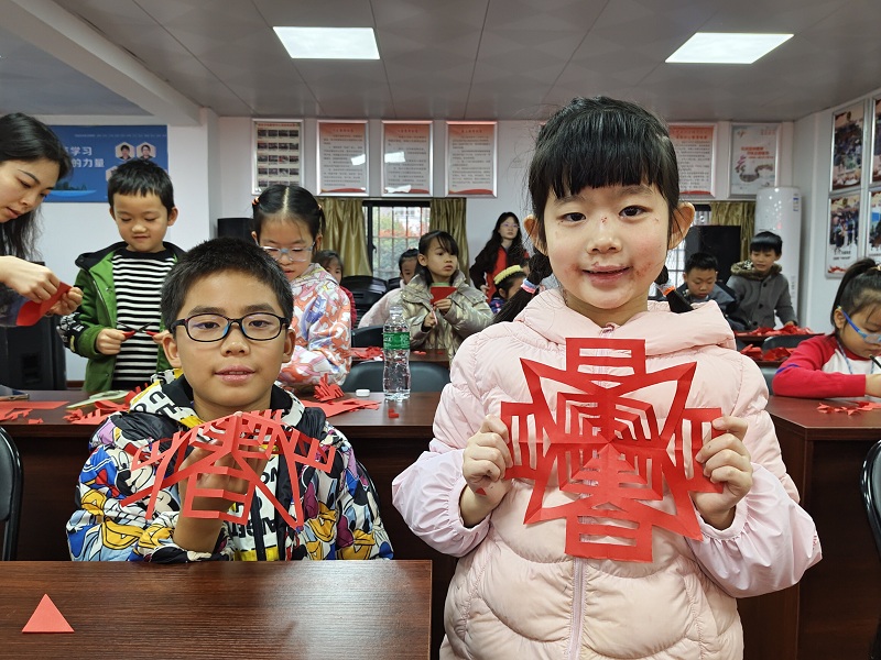 本次活動(dòng)邀請(qǐng)了市彎塘路小學(xué)文化志愿者王老師走進(jìn)社區(qū),王老師給現(xiàn)場(chǎng)的孩子們帶來(lái)了一場(chǎng)生動(dòng)有趣的剪紙文化課堂?;顒?dòng)伊始,王老師講解了剪紙的文化內(nèi)涵、發(fā)展歷史、基本手法,還特別介紹了南方和北方剪紙的差異相關(guān)知識(shí)。王老師通俗易懂地講述和大量的圖片資料展示,激發(fā)了孩子們民族自豪感和文化自信心。接下來(lái),在王老師的指導(dǎo)下,大家興高采烈開(kāi)始剪窗花和“春”字?,F(xiàn)場(chǎng)的孩子們時(shí)而調(diào)整剪刀的角度,剪紙?jiān)谑种猩舷路w,紅紙?jiān)诤⒆觽兪种姓郫B、畫(huà)線、剪裁后,不一會(huì)兒一個(gè)個(gè)寓意喜慶的窗花和“春”字呈現(xiàn)在大家面前。大家紛紛拿著自己的作品合影,現(xiàn)場(chǎng)氣氛十分熱鬧。