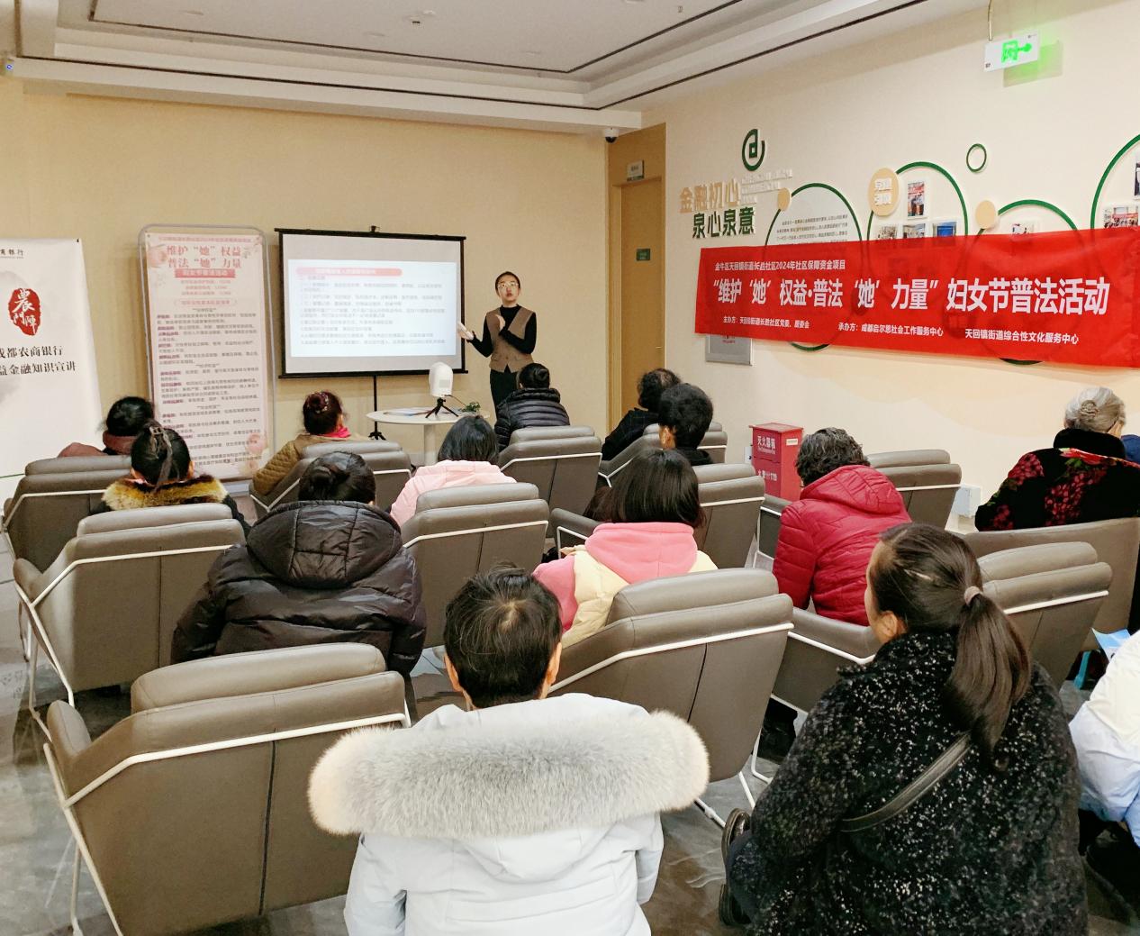 春風暖意濃,普法正當時。為慶祝第115個“三八”國際婦女節(jié),切實提升轄區(qū)婦女的法治意識和維權能力,2025年3月6日,四川省成都市金牛區(qū)天回鎮(zhèn)街道長勝社區(qū)關工委聯(lián)合社區(qū)婦聯(lián)、成都農商銀行天回支行開展了“維護‘她’權益·普法‘她’力量”婦女節(jié)主題普法活動,引導婦女群眾學會利用法律武器來維護自身的合法權益。
