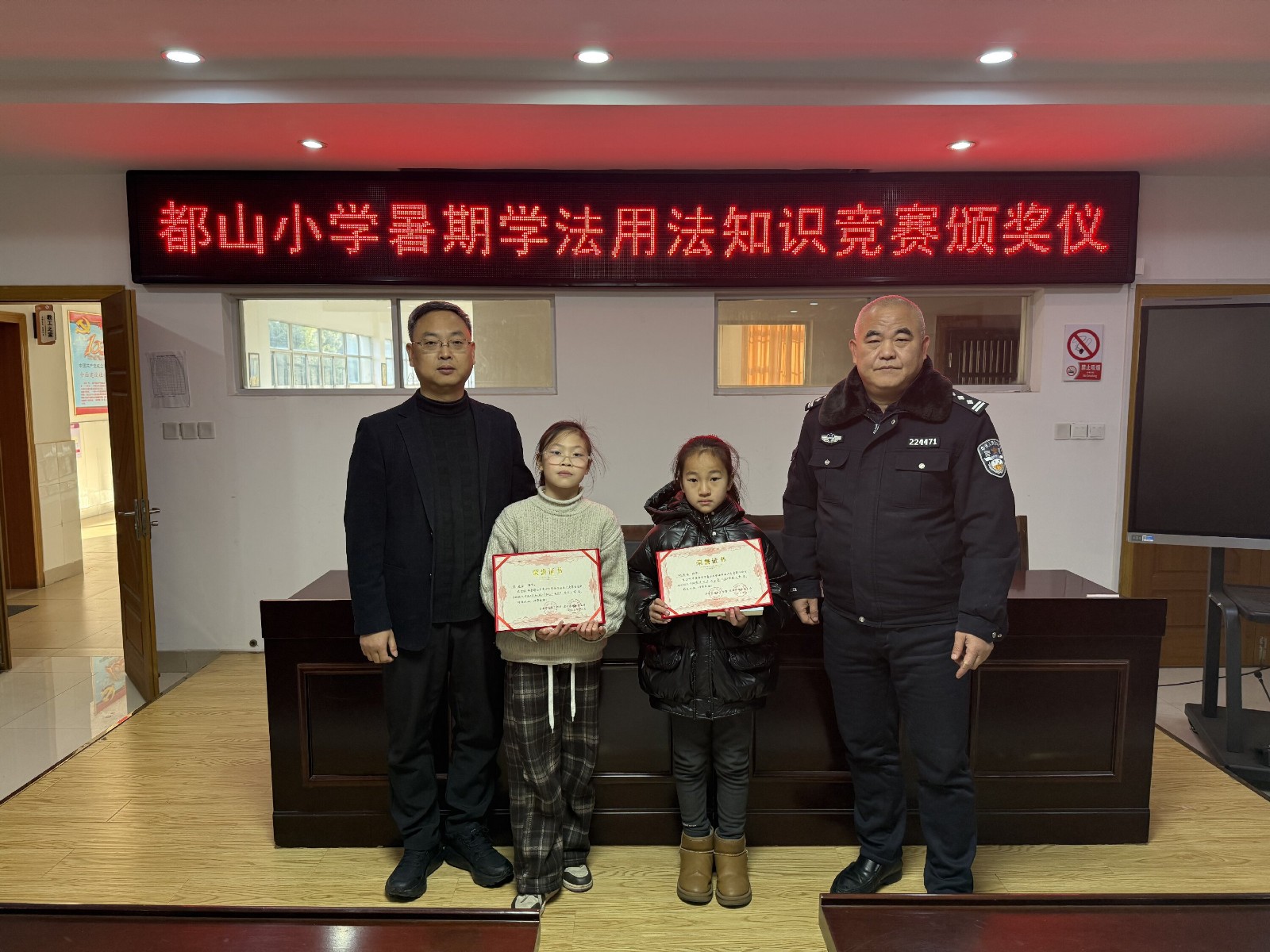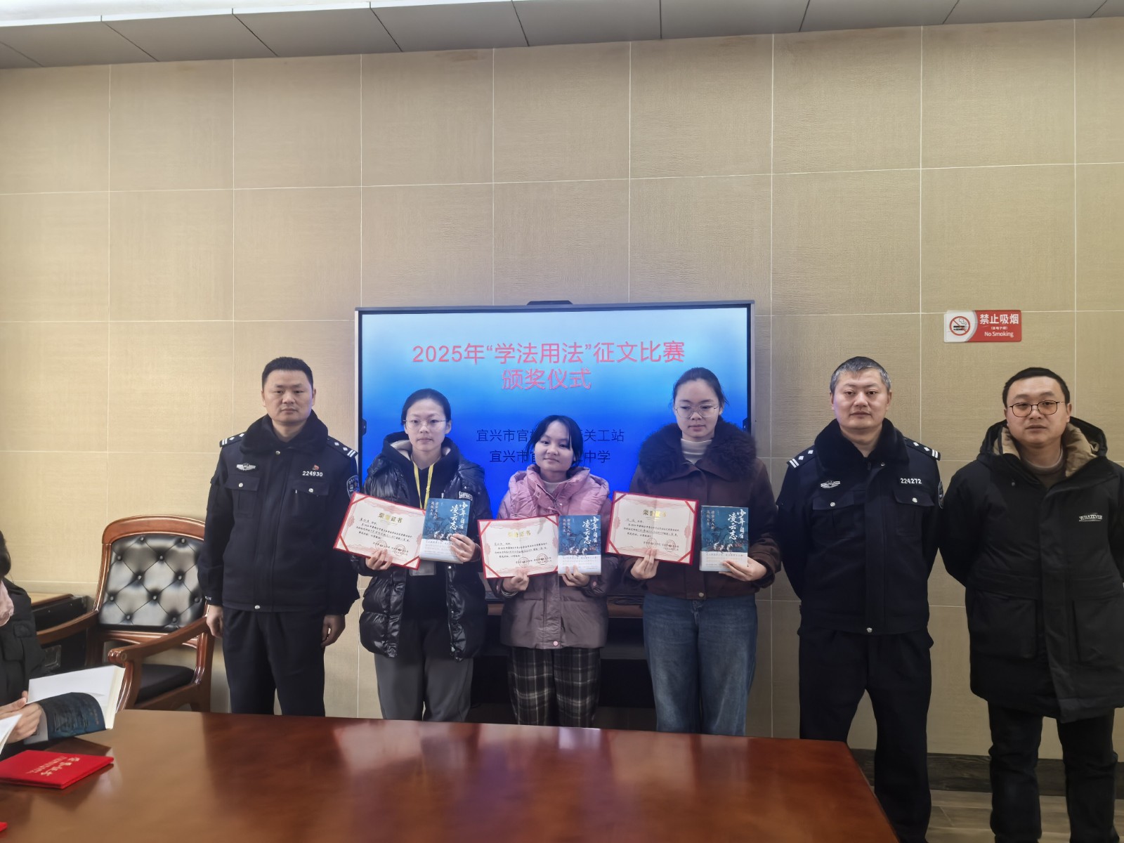 1月8日,江蘇省宜興市官林鎮(zhèn)關(guān)工委聯(lián)合官林派出所關(guān)工站舉行全鎮(zhèn)暑期青少年學(xué)法用法征文比賽頒獎(jiǎng)儀式,給在2025年宜興市暑期青少年學(xué)法用法征文比賽中獲獎(jiǎng)的優(yōu)秀學(xué)生頒發(fā)榮譽(yù)證書,并贈(zèng)閱《少年自有凌云志》書籍,來(lái)自宜興市官林第二中學(xué)、豐義中學(xué)、凌霞中學(xué)和凌霞小學(xué)、豐義小學(xué)、都山小學(xué)、鈕家小學(xué)的詹欣怡、史奕煊、吳雨桐、劉佳、趙雨涵、朱婷等76名中小學(xué)生領(lǐng)取了榮譽(yù)證書和贈(zèng)閱書籍。