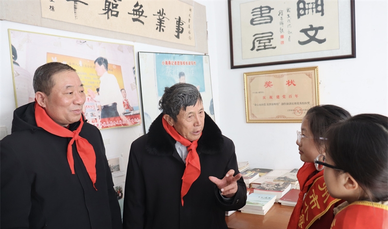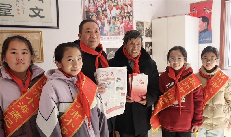 采訪結(jié)束,丁修武代表小海燕記者團(tuán)總部為開(kāi)文愛(ài)心書(shū)屋贈(zèng)送了徐州市關(guān)工委編輯的《紅色故事》一書(shū)和《小海燕》報(bào)。