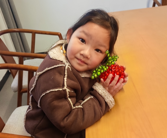 活動現場,社區(qū)志愿者化身指導老師,從串珠的穿線技巧、配色搭配到蘋果造型的拼接方法,逐一為孩子們講解示范。孩子們興致盎然地拿起珠子和絲線,跟著步驟認真操作,遇到難題時主動向志愿者和身邊長輩請教。在大家的努力下,一顆顆紅、綠珠子被巧妙串聯,變成了精致的蘋果串珠擺件。孩子們捧著親手制作的作品,臉上滿是自豪與喜悅,現場洋溢著溫馨歡樂的氛圍。