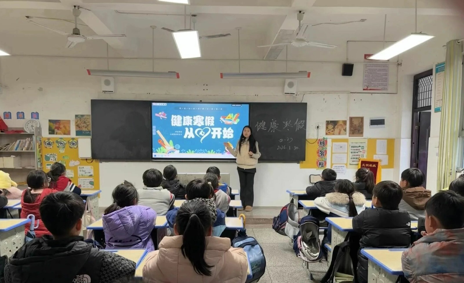 班隊(duì)會上,班主任老師圍繞“什么是寒假心理健康”“寒假常見心理問題”“心理調(diào)適指南”三個主題展開引導(dǎo)。針對假期中可能出現(xiàn)的作息混亂、網(wǎng)絡(luò)依賴、情緒波動、親子沖突等問題,老師結(jié)合具體案例進(jìn)行了分析,強(qiáng)調(diào)保持心理健康對假期生活和后續(xù)學(xué)習(xí)的重要意義。