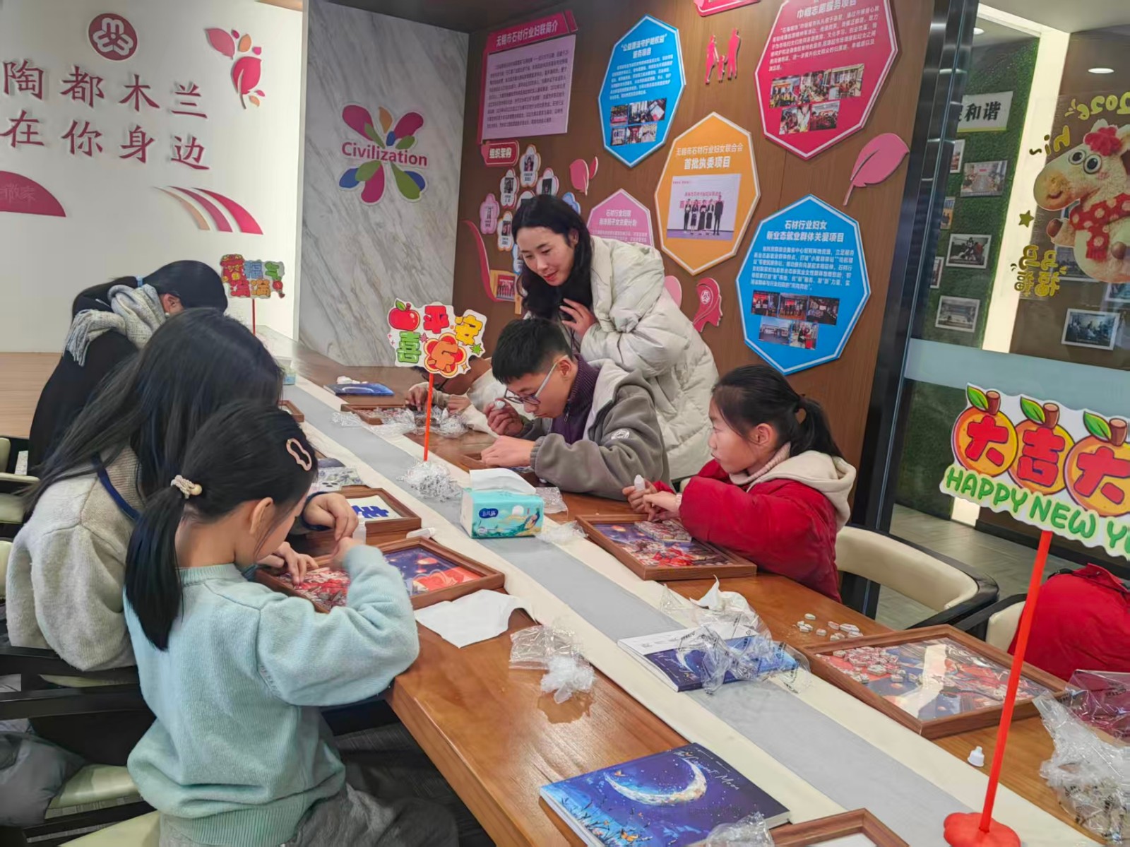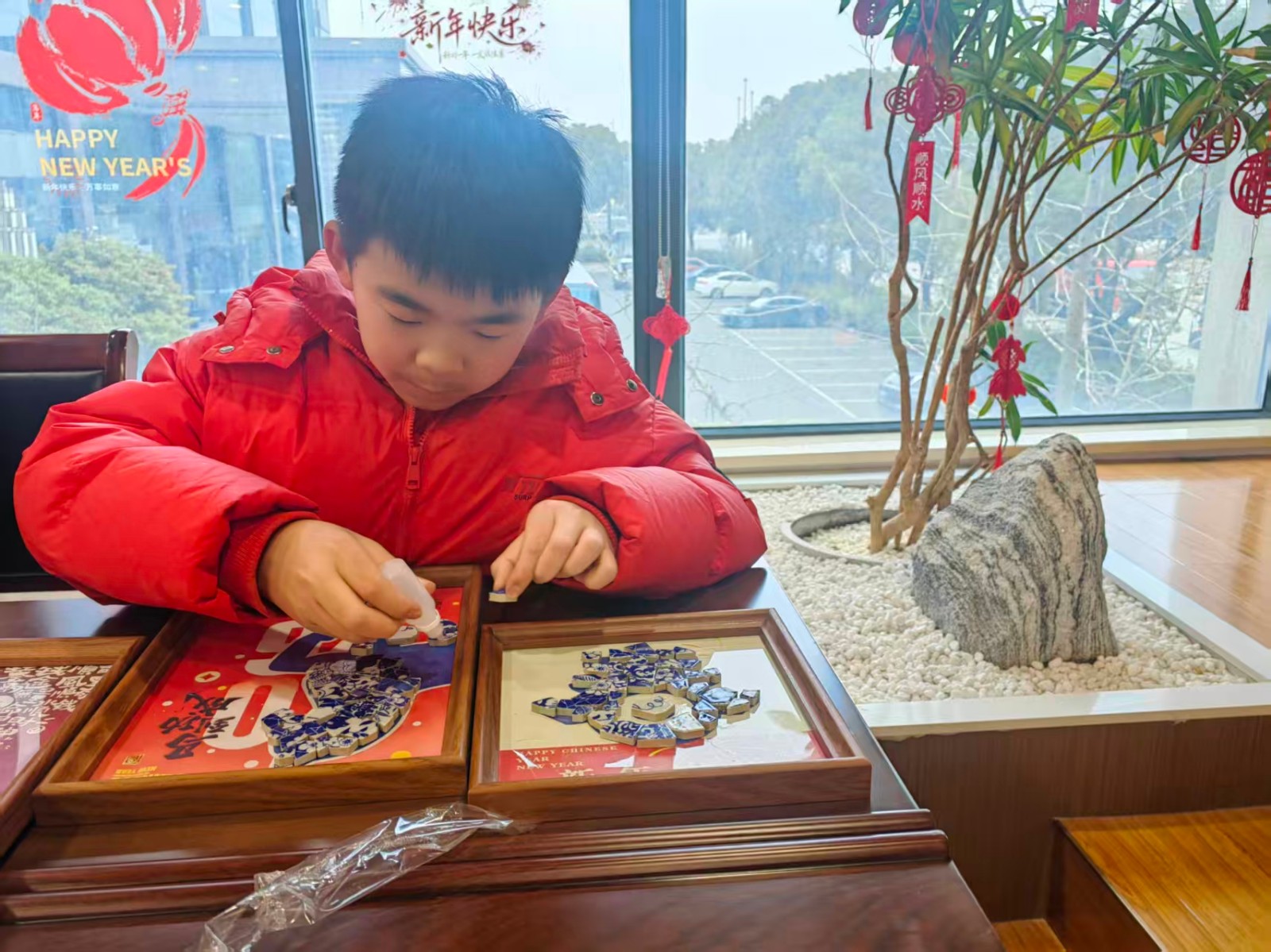 非遺陶瓷畫(huà)DIY制作環(huán)節(jié),小石娃和家長(zhǎng)全身心投入,以玉蘭花、馬到成功、年年有余,張燈結(jié)彩為主題的一幅幅精美陶瓷貼畫(huà)展現(xiàn)在觀眾眼前,孩子們看著剛完成的作品,臉上充滿成功的喜悅,憧憬著美好的未來(lái)。