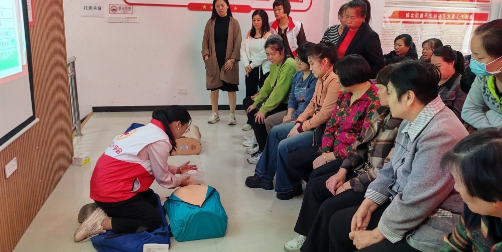 江西省新余市渝水區(qū)城北街道平安路社區(qū)關(guān)工委聯(lián)合渝水區(qū)紅十字會(huì)在新時(shí)代文明實(shí)踐站開(kāi)展應(yīng)急救護(hù)知識(shí)講座