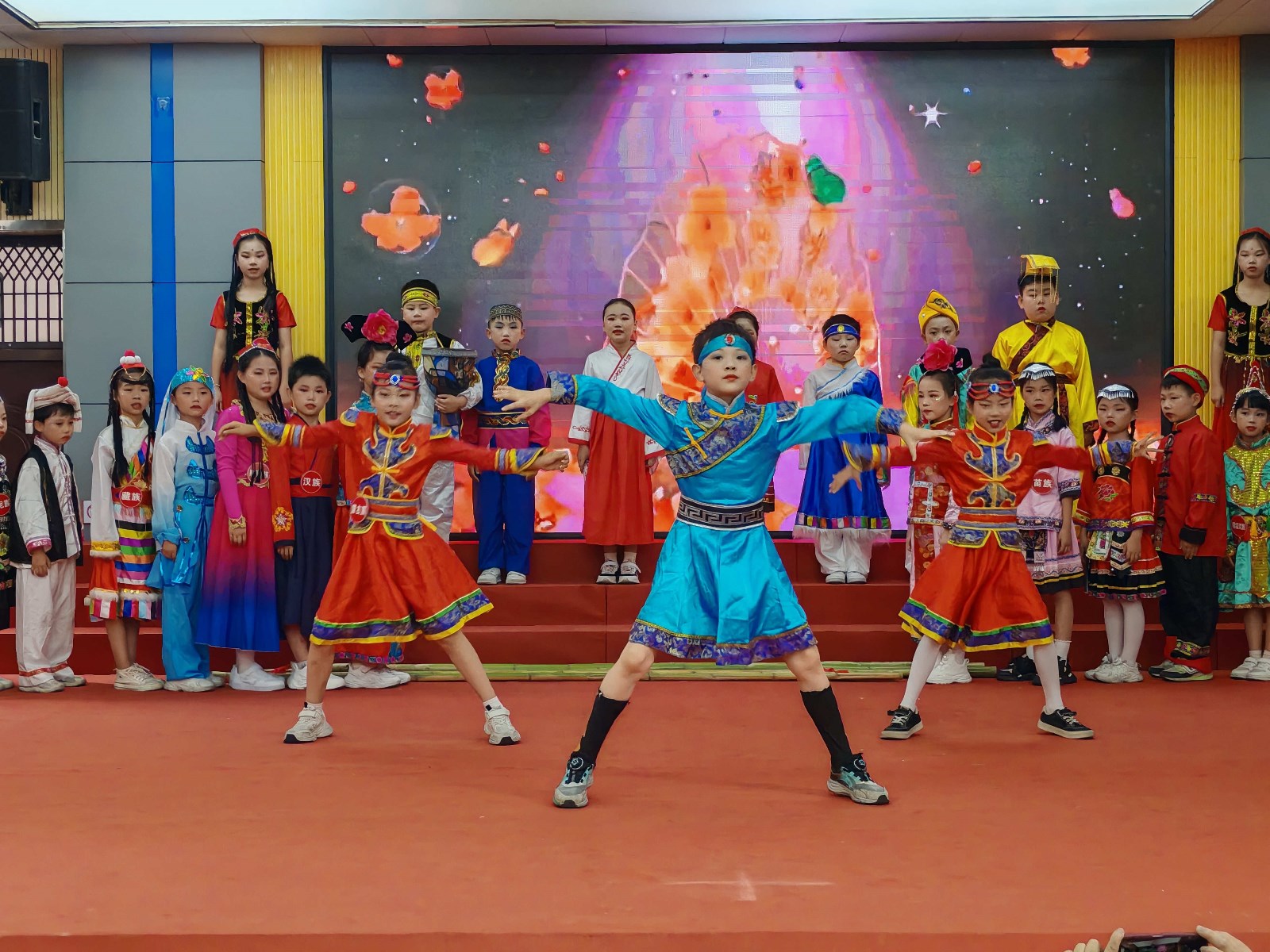 藝術(shù)節(jié)分年級(jí)展開(kāi),各具特色。一年級(jí)中國(guó)動(dòng)畫(huà)歌曲演唱;二年級(jí)紅色歌曲演唱;三年級(jí)民族服飾秀;四年級(jí)《新余我家鄉(xiāng)》演唱;五年級(jí)葫蘆絲演奏。