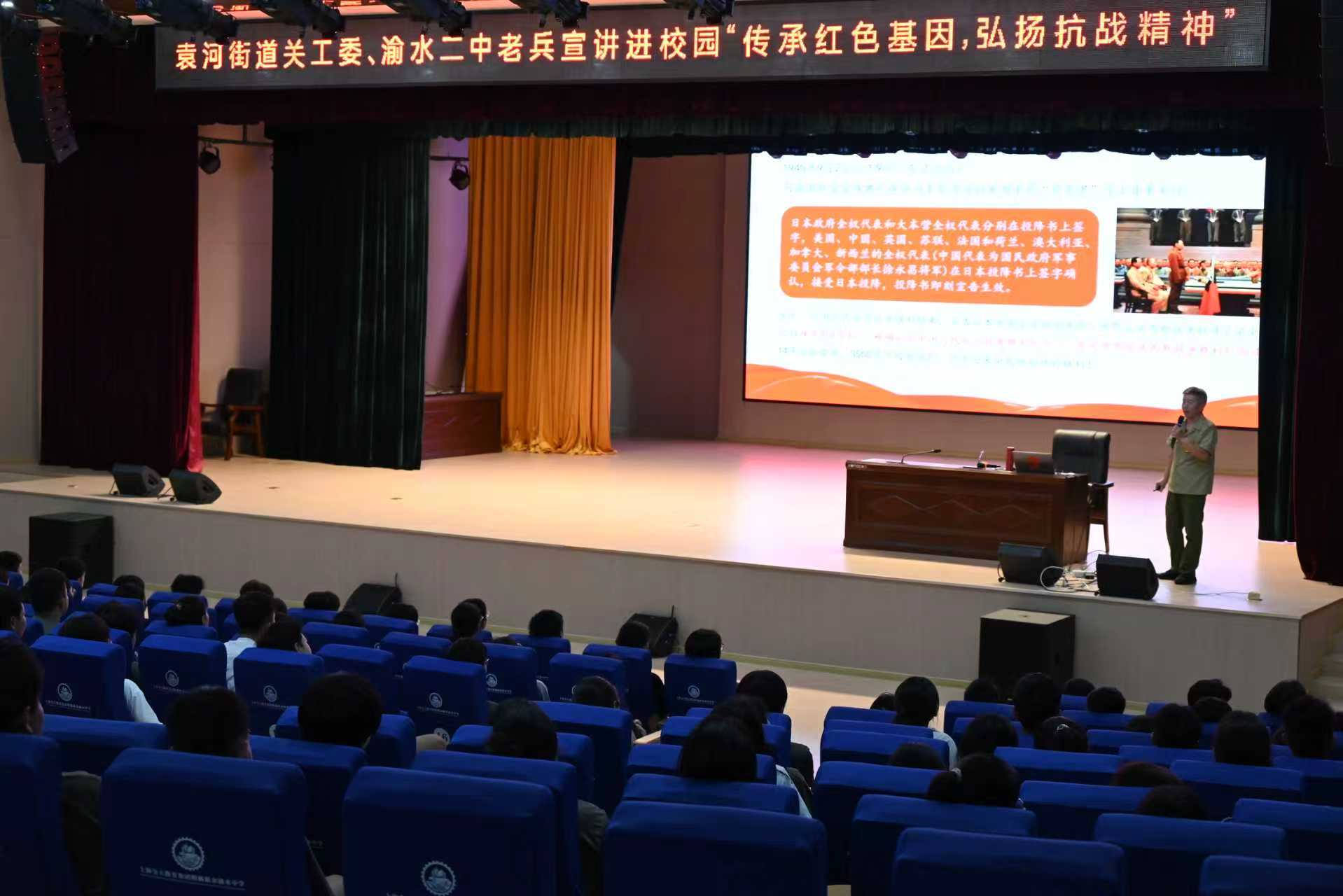 江西省新余市渝水區(qū)袁河街道關(guān)工委聯(lián)合渝水二中開(kāi)展“傳承紅色基因,弘揚(yáng)抗戰(zhàn)精神”主題宣講活動(dòng)