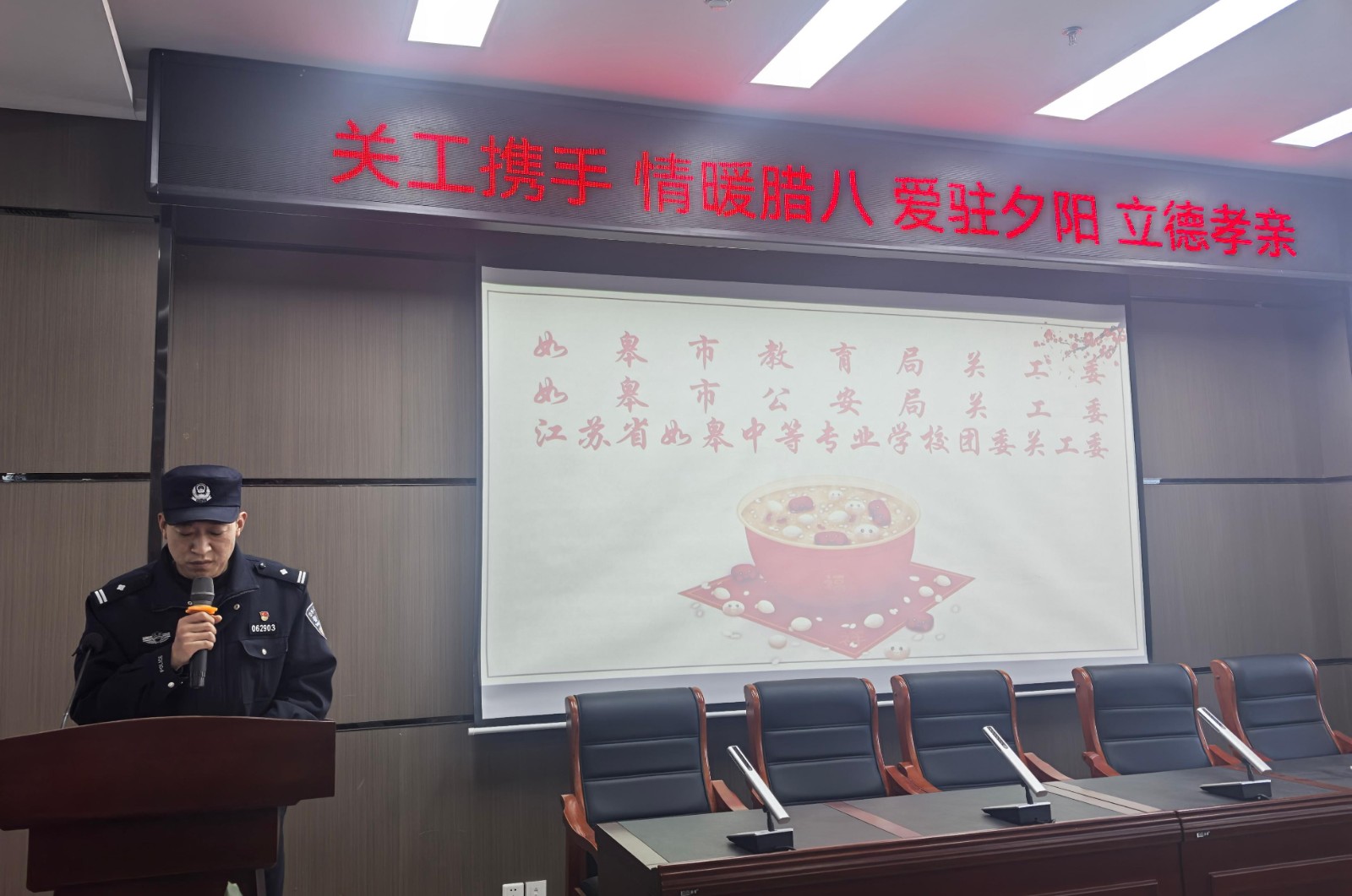 “愿天常生好人,愿人常行好事。”如皋東大街迎春橋上的百年對(duì)聯(lián),恰是這座世界長(zhǎng)壽鄉(xiāng)孝善文化的生動(dòng)注腳。歲至臘八,粥暖情長(zhǎng),在這個(gè)承載著團(tuán)圓期許與敬老傳統(tǒng)的節(jié)日來(lái)臨之際,1月22日下午,江蘇省如皋市公安局關(guān)工委聯(lián)合市教育局關(guān)工委、江蘇省如皋中等專業(yè)學(xué)校,組織“五老”志愿者、迎春派出所關(guān)工站民警代表走進(jìn)如皋市社會(huì)福利中心,落實(shí)中央十六部門聯(lián)合部署開(kāi)展的“把愛(ài)帶回家——暖心護(hù)航伴成長(zhǎng)”2026寒假兒童關(guān)愛(ài)服務(wù)活動(dòng)精神,以“關(guān)工攜手,情暖臘八,愛(ài)駐夕陽(yáng),立德孝親”為主題開(kāi)展專項(xiàng)活動(dòng),用銀齡擔(dān)當(dāng)與青春活力,為寒冬里的老人和孩子送上最真摯的溫暖,續(xù)寫著長(zhǎng)壽之鄉(xiāng)的溫情篇章。