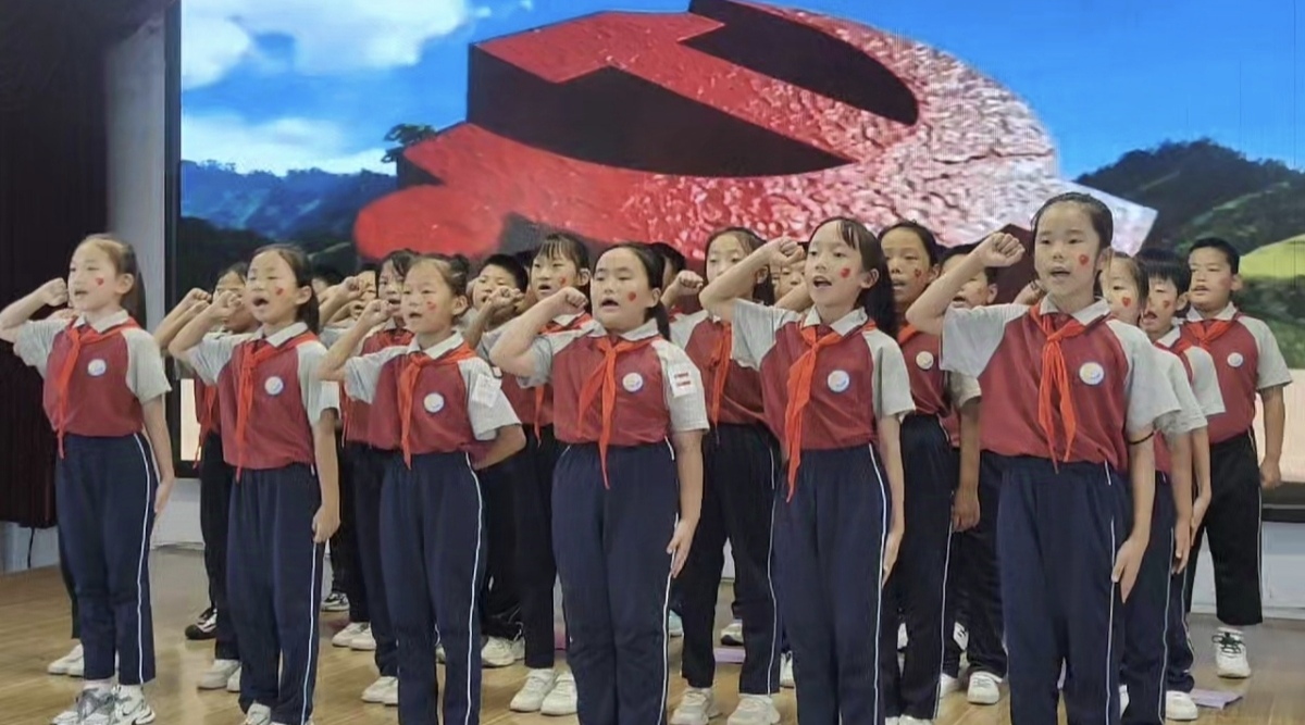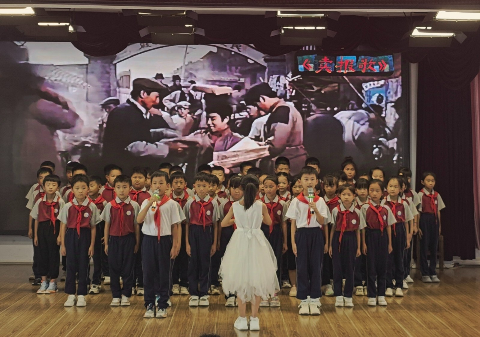 同學(xué)們歌聲嘹亮,響徹云霄,用最真摯的情感編織成一首首動(dòng)人的樂(lè)章。一首首耳熟能詳?shù)慕?jīng)典紅歌在舞臺(tái)上響起,猶如一幅幅歷史長(zhǎng)卷,喚起了師生們心中的紅色記憶?!稕](méi)有共產(chǎn)黨就沒(méi)有新中國(guó)》《紅星閃閃》《共產(chǎn)兒童團(tuán)歌》《賣報(bào)歌》……這些承載著無(wú)數(shù)人記憶與情感的老歌,在新一代學(xué)子口中重新煥發(fā)生機(jī)。