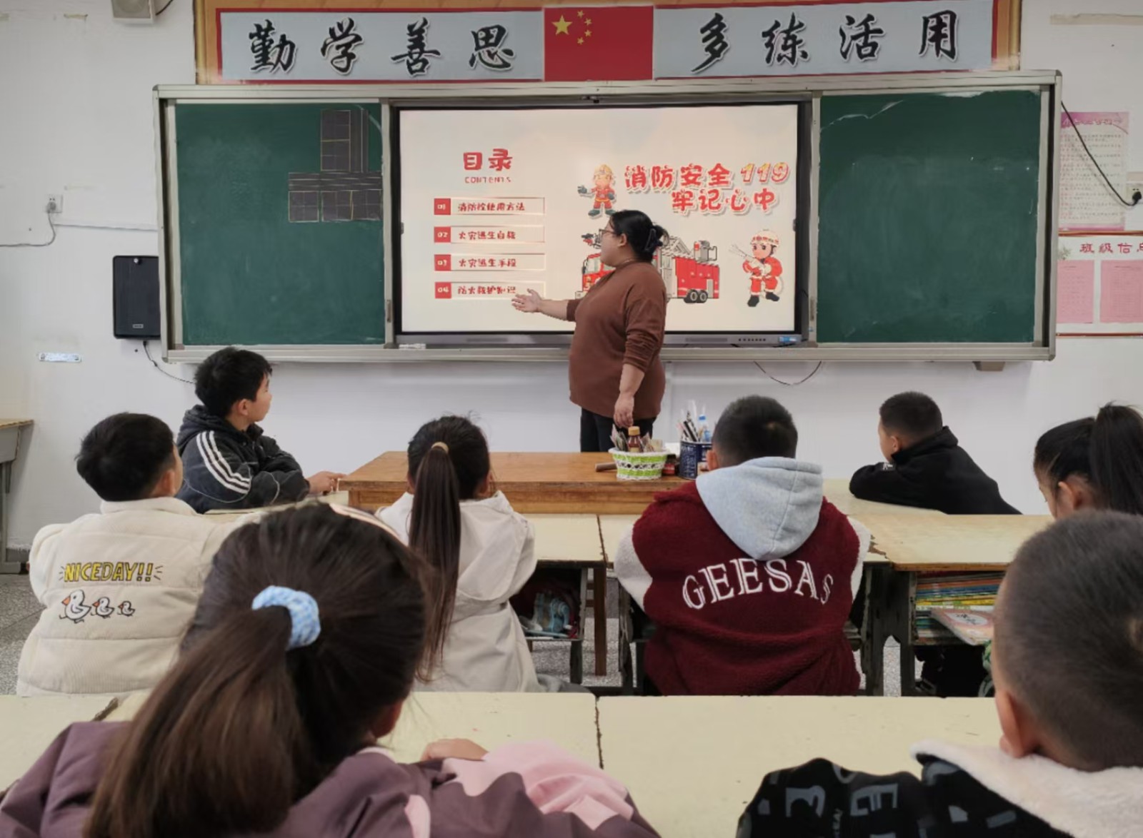 活動中,校關工委主任、各班教師根據(jù)班級學生的年齡特點,利用課件、圖片、視頻、實例等形式讓學生知道火災的危害性,現(xiàn)場模擬展示了火災自救和逃生的途徑,并圍繞易發(fā)生火災的身邊小事與學生互動進行消防安全教育。通過學習、畫逃生路線圖等辦法,警示孩子們了解火災的危害性,掌握更多的自救、逃生、自我保護意識。