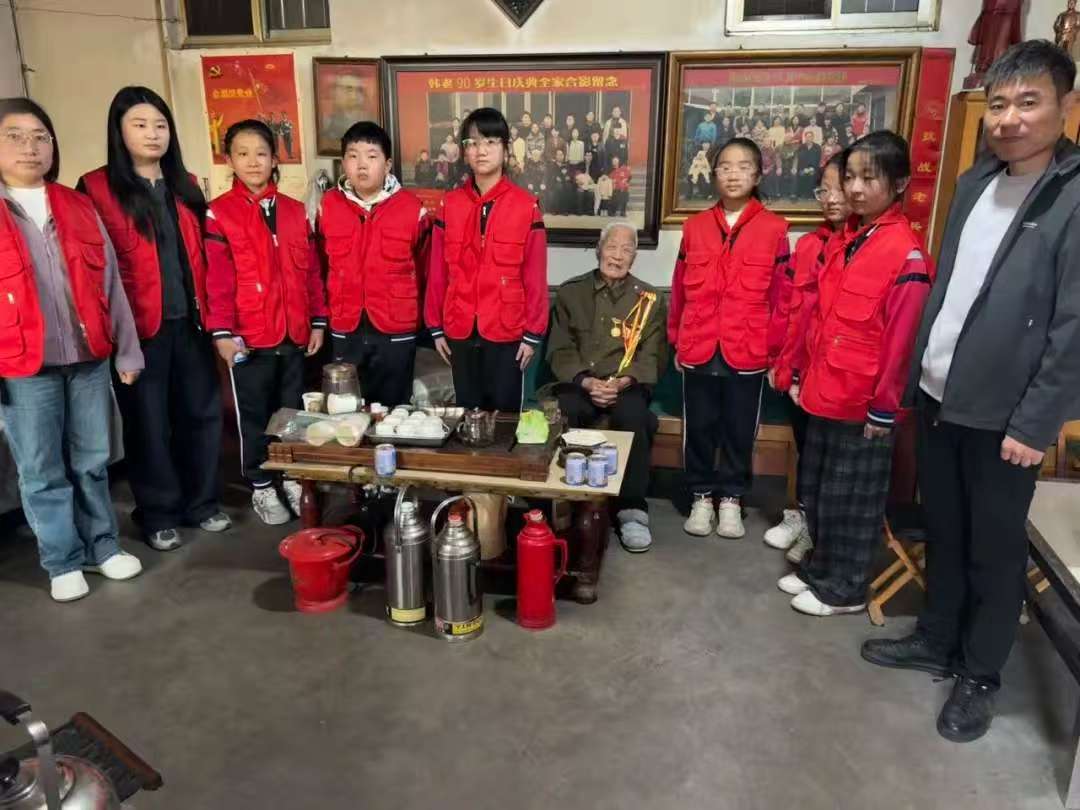 劉校長與老兵促膝長談,細(xì)心詢問老人的身體狀況、飲食起居,叮囑老人保重身體,遇到困難及時溝通。少先隊員們圍在老人身邊,用稚嫩的聲音送上“爺爺節(jié)日快樂”的問候,溫暖的話語讓老兵的家中充滿歡聲笑語,也讓老英雄感受到了來自校園的真摯關(guān)懷。
