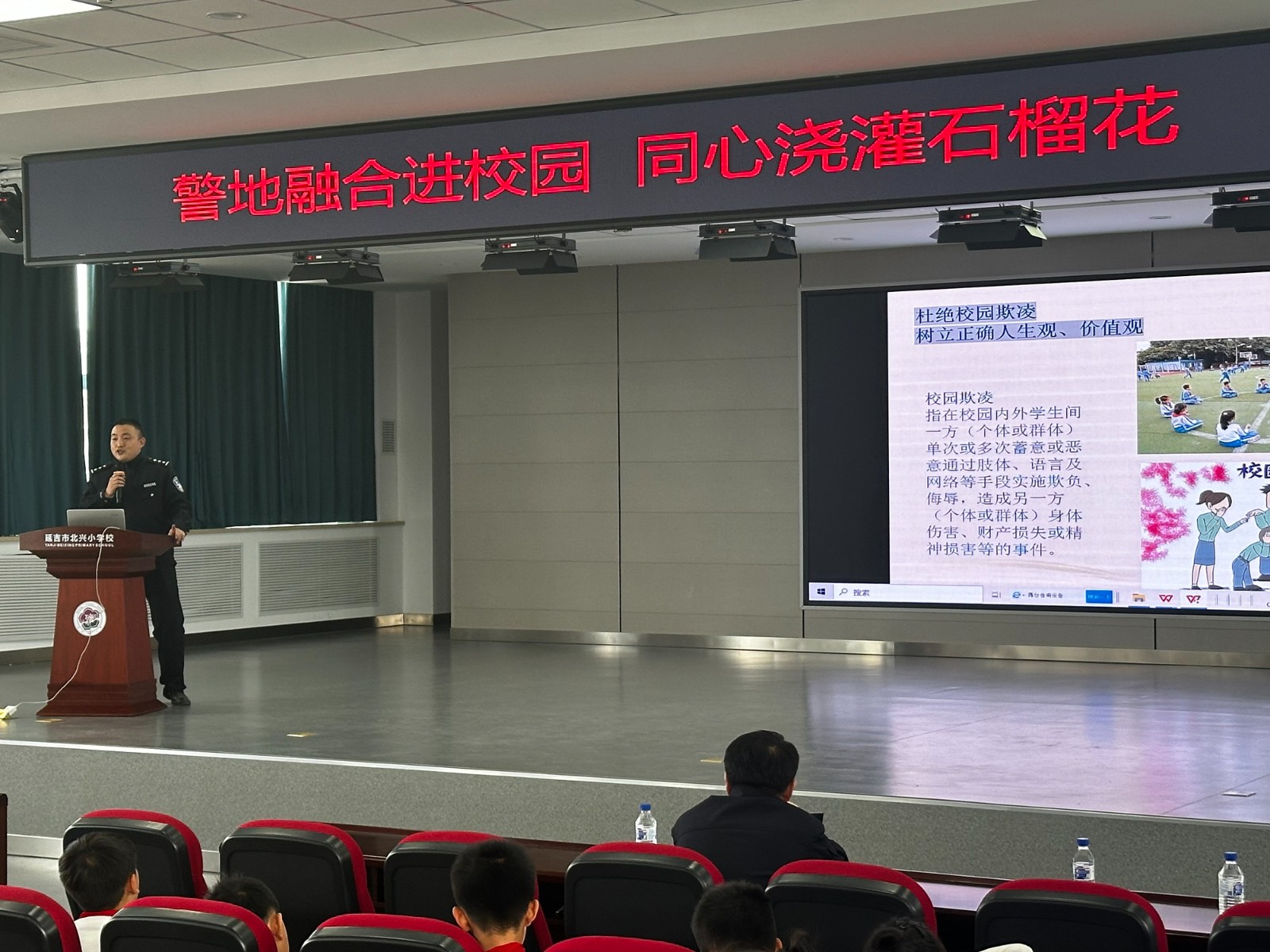 為增強(qiáng)青少年法治意識(shí),呵護(hù)青少年健康成長(zhǎng),4月24日,延吉市北山街道丹吉社區(qū)關(guān)工委聯(lián)合北山街道派出所走進(jìn)北興小學(xué),開展了“警地融合進(jìn)校園 同心澆灌石榴花”法治教育主題活動(dòng)。