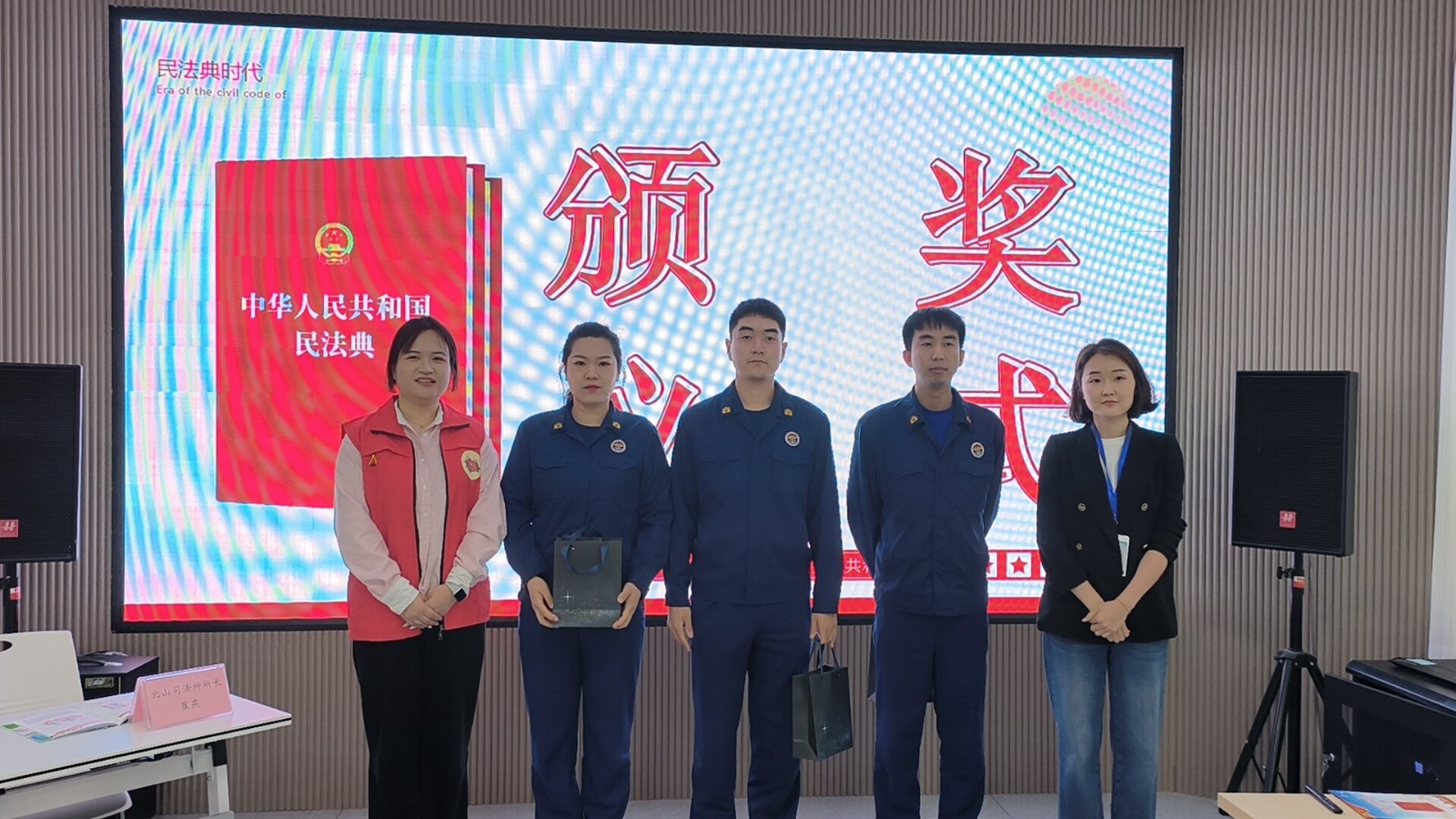 活動(dòng)伊始,《民法典》宣傳視頻迅速吸引了大家的關(guān)注,也點(diǎn)燃了知識(shí)競(jìng)賽的“戰(zhàn)火”。參賽各單位組成了五支隊(duì)伍,每隊(duì)四人。唯一的學(xué)生隊(duì)即延邊大學(xué)的選手們個(gè)個(gè)精神抖擻、意氣風(fēng)發(fā),以飽滿(mǎn)的狀態(tài)投入到競(jìng)賽中。他們思維敏捷,積極搶答,憑借著扎實(shí)的法律知識(shí)積累和出色的應(yīng)變能力,展現(xiàn)出了延邊大學(xué)學(xué)子的風(fēng)采。歷經(jīng)多輪扣人心弦的激烈角逐,延邊朝鮮族自治州消防救援支隊(duì)最終憑借更為卓越的表現(xiàn)榮獲優(yōu)勝。北山街道司法所所長(zhǎng)崔燕為其頒了獎(jiǎng)。