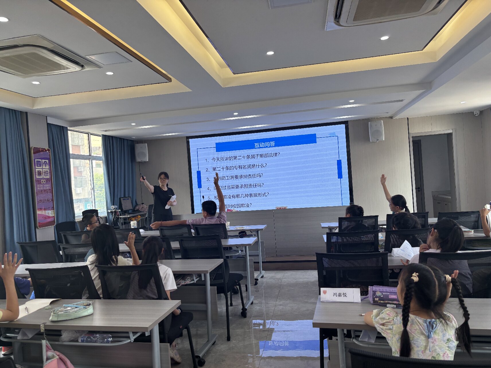 萬石司法所關(guān)工站志愿者,“從二十條談校園欺凌”專題講座以《未成年人學校保護規(guī)定》為藍本,梳理“言語、肢體、網(wǎng)絡(luò)、財物”四類欺凌形式。通過“欺凌者—被欺凌者—旁觀者”三維角色體驗,引導孩子識別欺凌信號、掌握求助路徑、學會同伴支持。講座尾聲,孩子們共同宣讀“拒絕欺凌倡議書”,并在主題橫幅上鄭重簽名,承諾做勇敢而溫暖的少年。
