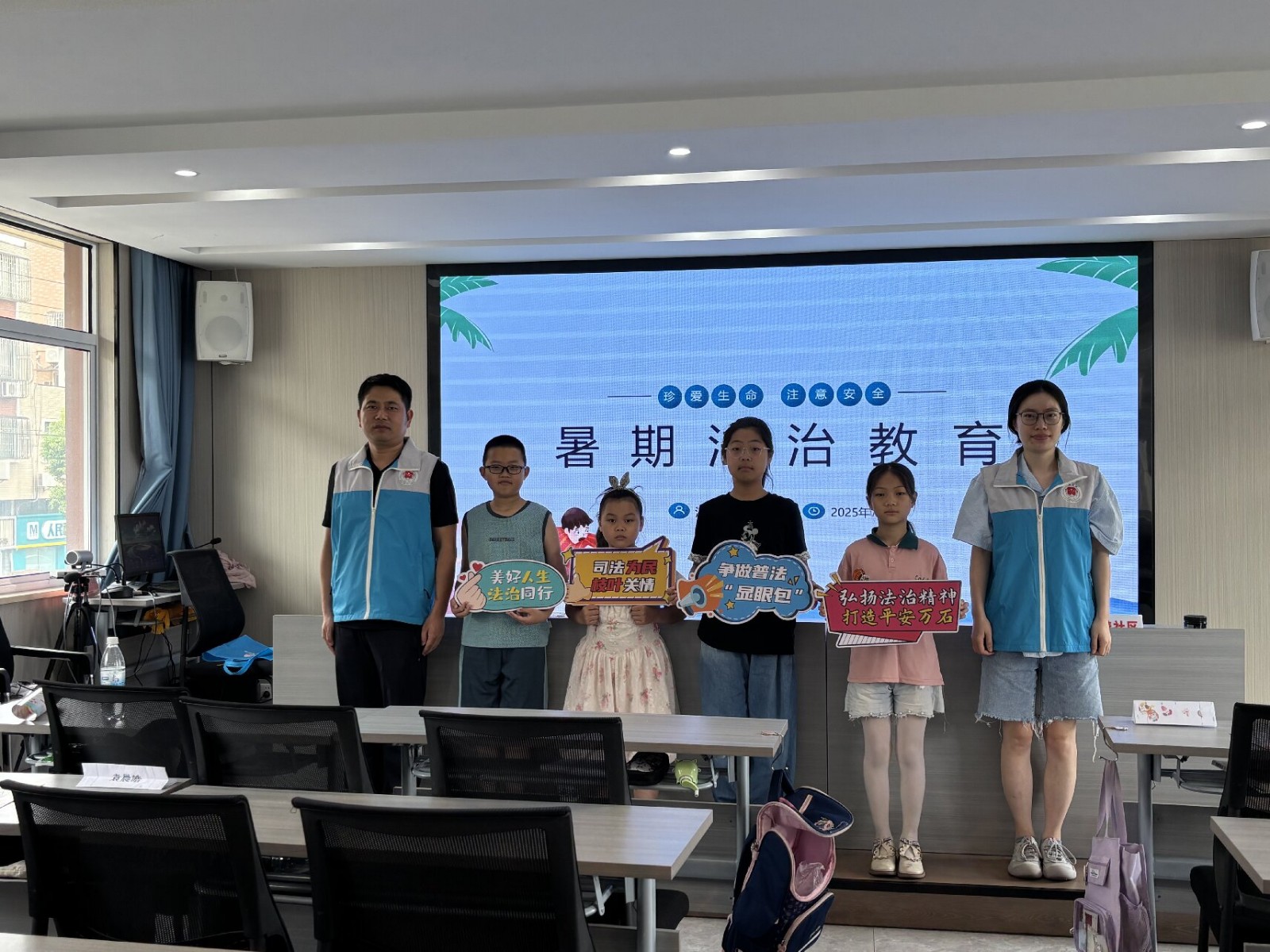 7月15日、16日,江蘇省宜興市萬石鎮(zhèn)萬善社區(qū)校外輔導站與萬石鎮(zhèn)鎮(zhèn)總工會、婦聯(lián)攜手舉行的“安心托班”,萬石司法所、派出所關(guān)工站的志愿者走進校外輔導站,開啟了“暑期法治教育 護航孩童成長”之旅,為孩子們心中播下“知法、守法、用法”的種子。