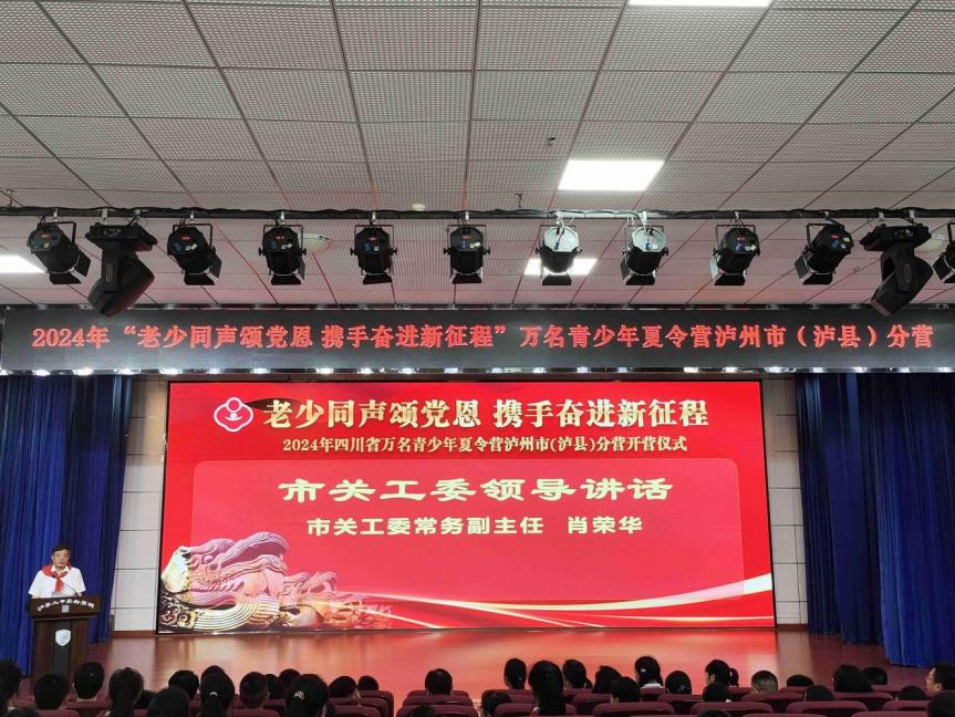 7月7日,“老少同聲頌黨恩 攜手奮進(jìn)新征程”2024年四川省萬(wàn)名青少年夏令營(yíng)瀘州市(瀘縣)分營(yíng)開營(yíng)儀式在瀘縣二中實(shí)驗(yàn)學(xué)校舉行。瀘州市關(guān)工委常務(wù)副主任肖榮華出席活動(dòng)并宣布開營(yíng),市關(guān)心下一代基金會(huì)理事長(zhǎng)張茂輝向營(yíng)員代表授營(yíng)旗。