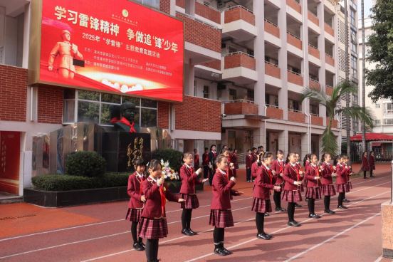 3月3日,薌城區(qū)關(guān)工委、區(qū)教育局、共青團薌城區(qū)委聯(lián)合在薌城實驗小學(xué)公園校區(qū)舉行 “學(xué)習(xí)雷鋒精神 爭做追‘鋒’少年”學(xué)雷鋒活動月啟動儀式。儀式中少先隊員代表向雷鋒雕像敬獻鮮花,表達對雷鋒同志的深切懷念和崇高敬意;校長陳國兵發(fā)表了熱情洋溢的講話,鼓勵同學(xué)們要學(xué)習(xí)雷鋒精神,將雷鋒精神融入日常學(xué)習(xí)和生活中,以實際行動踐行雷鋒精神;全體學(xué)生還進行莊嚴宣誓,表達了傳承雷鋒精神的決心;全體師生一起歌唱《學(xué)習(xí)雷鋒好榜樣》。