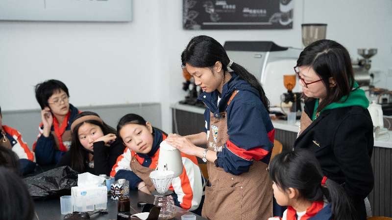 活動現(xiàn)場,同學(xué)們在老師的帶領(lǐng)下逐一參觀了未成年人心理放松室、茶藝實訓(xùn)室、咖啡實訓(xùn)室、烘焙實訓(xùn)室、酒店模擬管理、青瓷體驗中心等多個實訓(xùn)空間并進(jìn)行了沉浸式體驗,現(xiàn)場感受每個職業(yè)需要的技能和知識。