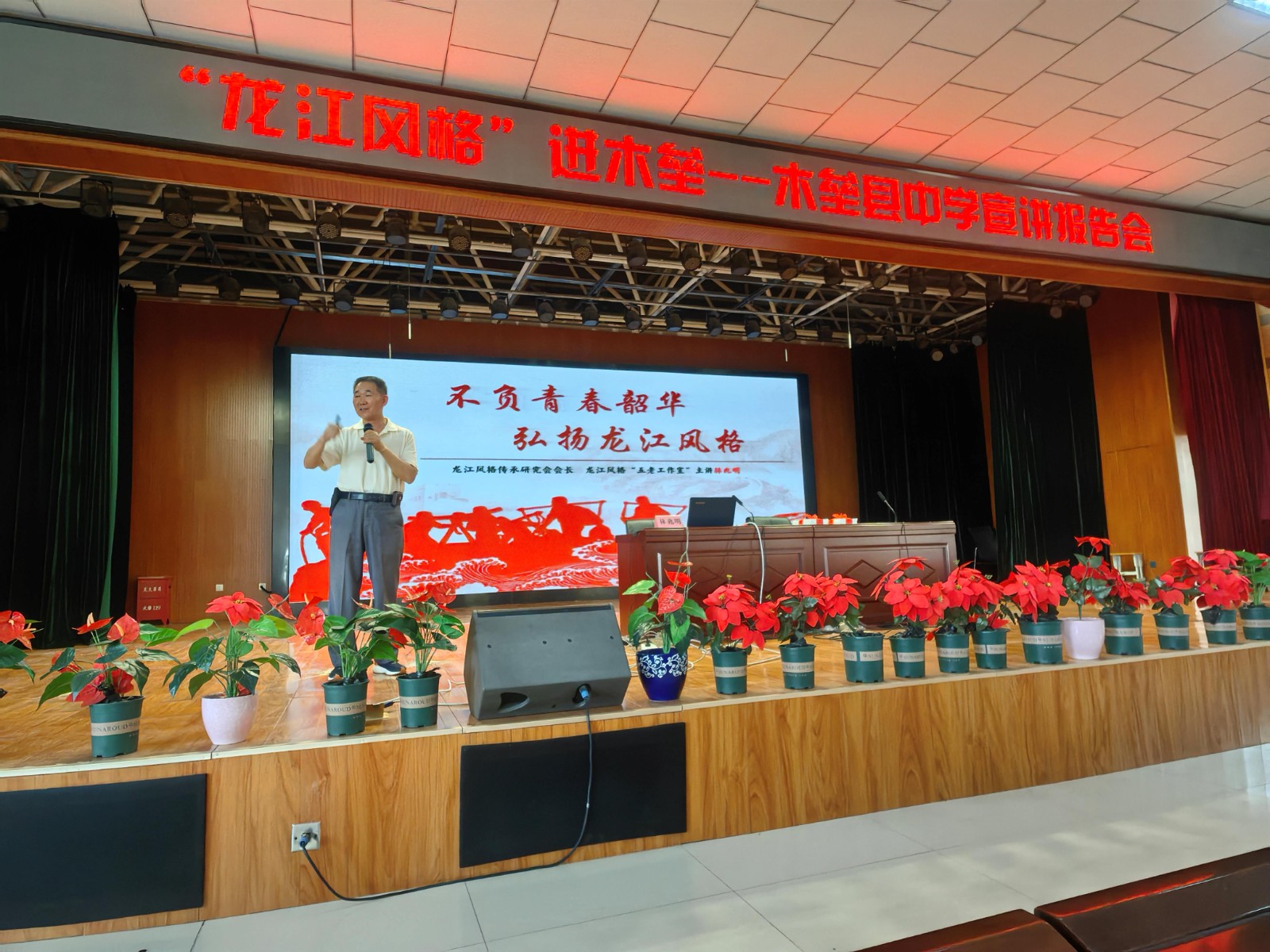 宣講小分隊(duì)先后走進(jìn)月亮地村、新城社區(qū)、木壘縣會(huì)議中心、縣中學(xué)及大黃水泉邊境派出所,通過(guò)專題報(bào)告、視頻展播、史料展示、互動(dòng)交流等方式,生動(dòng)詮釋“龍江風(fēng)格”的時(shí)代價(jià)值。龍江風(fēng)格展示館館長(zhǎng)、龍江風(fēng)格研究會(huì)會(huì)長(zhǎng)、“龍江風(fēng)格“五老”工作室主講師”林兆明以“學(xué)習(xí)習(xí)近平文化思想,賡續(xù)弘揚(yáng)龍江風(fēng)格”“龍江風(fēng)格里的廉潔文化”“不負(fù)青春韶華,弘揚(yáng)龍江風(fēng)格”為主題做了五場(chǎng)宣講報(bào)告。在木壘縣中學(xué),千余名師生在聆聽(tīng)了主題報(bào)告后,就青少年如何踐行精神內(nèi)涵展開(kāi)熱烈討論。