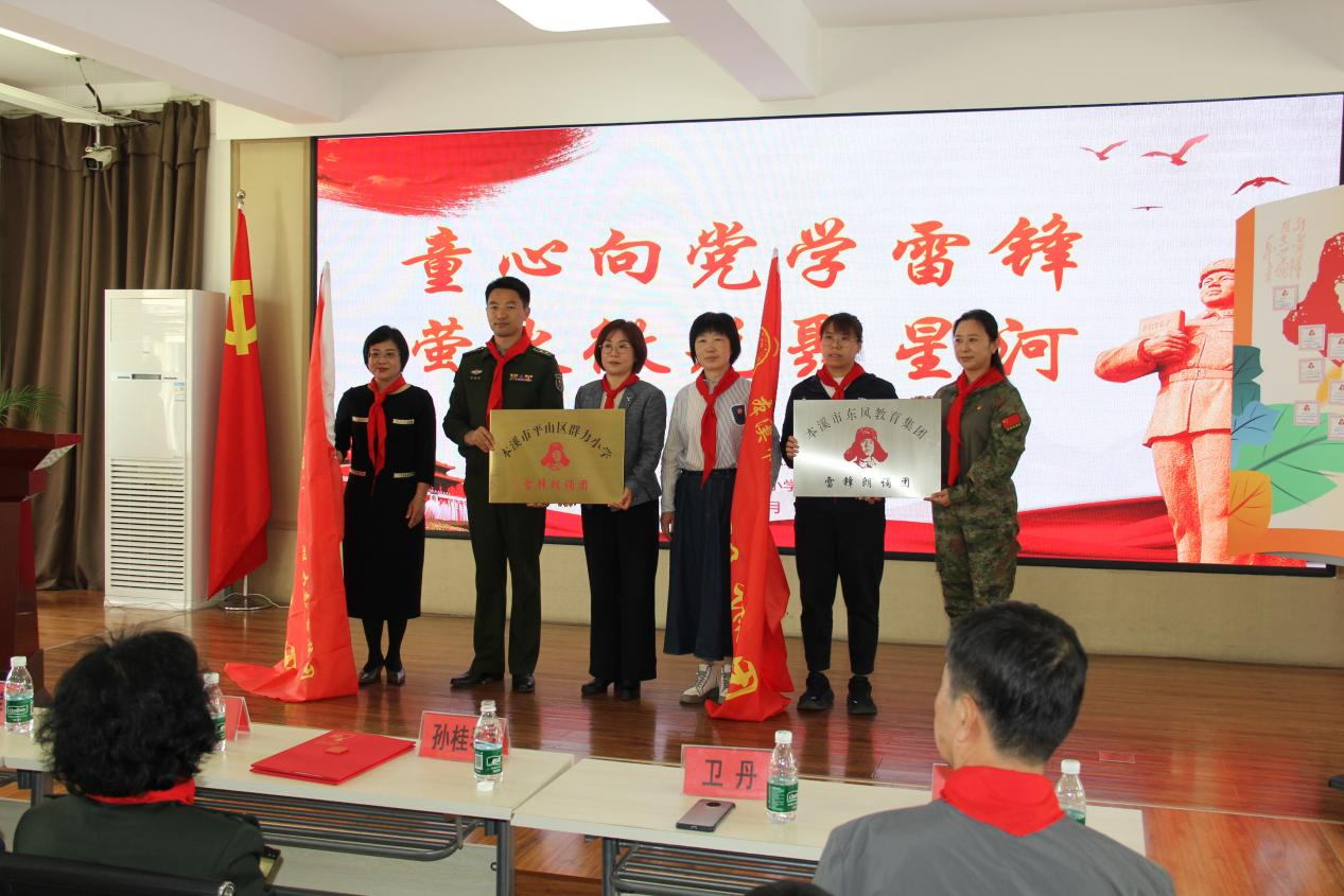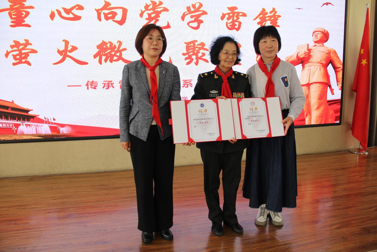隨后,群力小學(xué)、東風(fēng)小學(xué)校領(lǐng)導(dǎo)為孫桂琴頒發(fā)名譽(yù)校長聘書,表達(dá)對她一生傳承雷鋒精神的誠摯敬意。“雷鋒朗誦團(tuán)”衛(wèi)丹團(tuán)長、石海濱政委授予兩所小學(xué)“雷鋒朗誦團(tuán)”稱號牌匾及團(tuán)旗,兩所學(xué)校莊重地接過牌匾和團(tuán)旗,意味著雷鋒精神將進(jìn)一步在校園中發(fā)揚與傳承。于洋老師在致詞中,向廣大師生們發(fā)出“攜手共進(jìn),以雷鋒為榜樣,讓雷鋒精神在新時代煥發(fā)出更加耀眼的光芒”的號召。學(xué)生代表向特邀嘉賓贈送了精心制作的雷鋒形象非遺竹編畫,竹編畫工藝精美,飽含著學(xué)生們對嘉賓的尊敬和對雷鋒精神的熱愛。