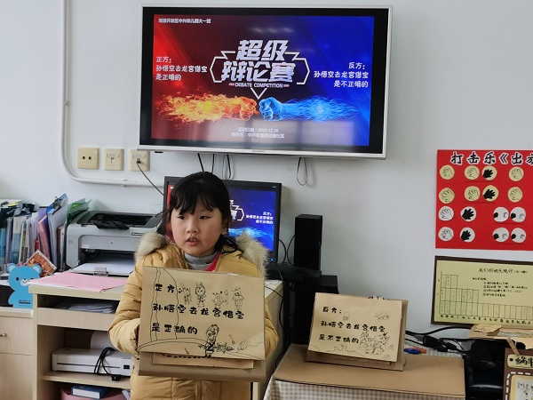 “孫悟空應(yīng)不應(yīng)該去龍宮借寶呢?”1月2日下午,在南通開發(fā)區(qū)中興幼兒園內(nèi),一場別有風(fēng)趣的幼兒辯論賽正在舉行,來自正反方的萌娃們用稚嫩的聲音,互相反駁對方觀點。唇槍舌劍,展示語言和思維的力量。