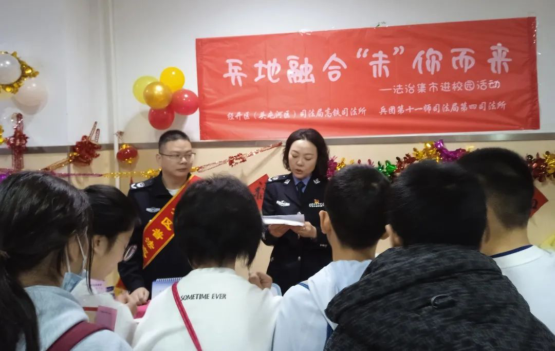 為進一步加強兵地融合發(fā)展,深化未成年人法治教育,近日,烏魯木齊經(jīng)濟技術(shù)開發(fā)區(qū)(頭屯河區(qū))關(guān)工委、司法局高鐵司法所聯(lián)合兵團第十一師司法局第四司法所一同走進烏魯木齊市126中學(慈湖路校區(qū))開展了“兵地融合‘未’你而來”主題普法宣傳活動。