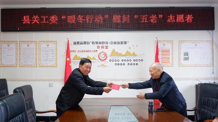 1月15日,自貢市富順縣關(guān)工委執(zhí)行主任林國陽帶隊(duì)到轄區(qū)福善鎮(zhèn)、李橋鎮(zhèn)、永年鎮(zhèn)等鎮(zhèn)開展了“五老”和困境青少年走訪慰問活動(dòng),縣關(guān)工委副主任康忠乾、縣關(guān)心下一代公益協(xié)會(huì)會(huì)長張利,相關(guān)鎮(zhèn)關(guān)工委主任、執(zhí)行主任參加慰問。