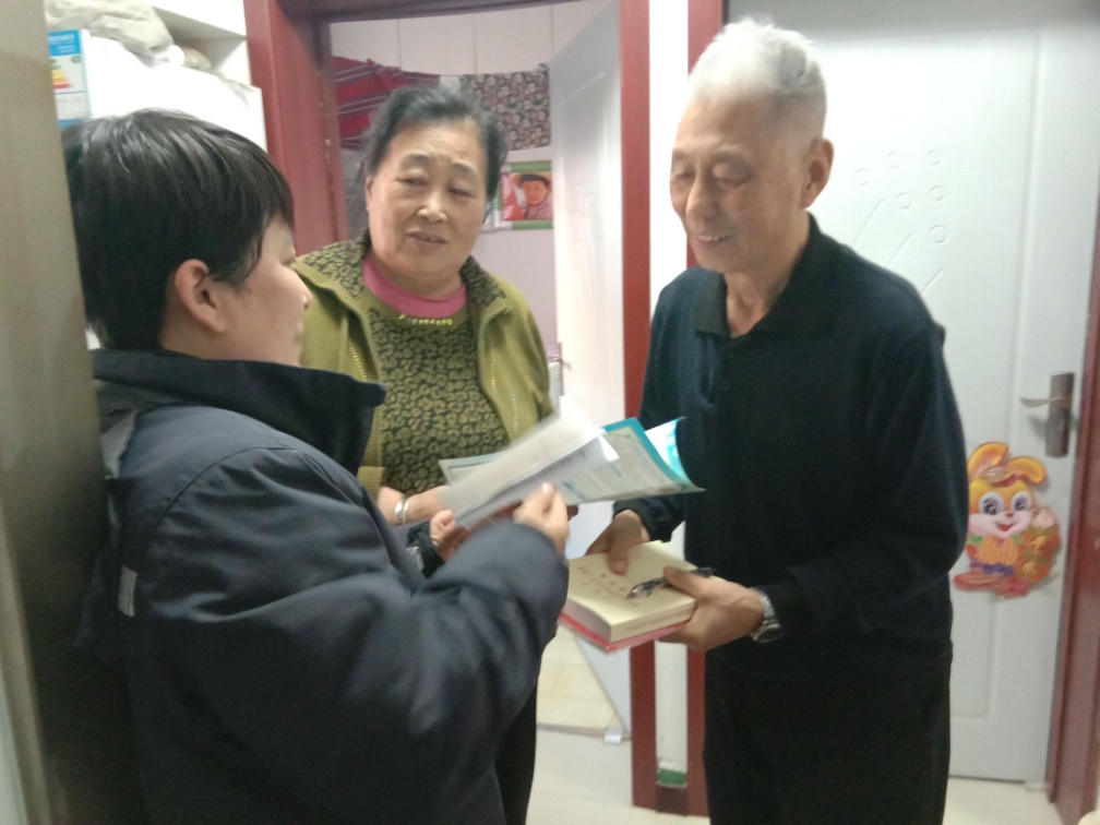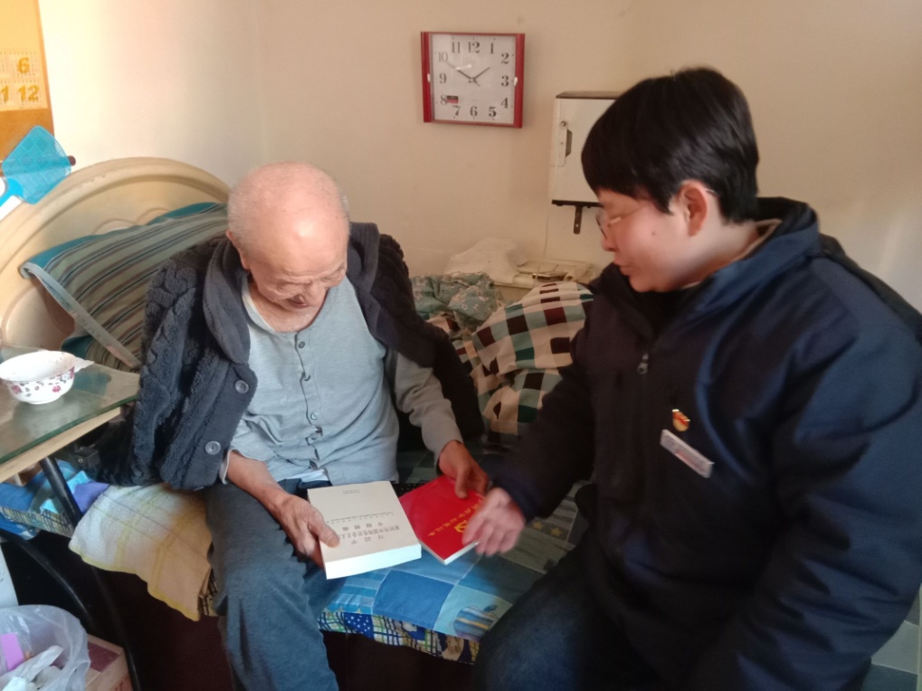 三家子社區(qū)黨委書(shū)記劉東輝來(lái)到老黨員家中,為他們送上《黨的二十大報(bào)告學(xué)習(xí)輔導(dǎo)百問(wèn)》等書(shū)籍,面對(duì)面為老黨員們解讀黨的二十大精神,將主題教育書(shū)籍送到老黨員手中,激發(fā)老黨員們“終身學(xué)習(xí)跟黨走”的熱情,同時(shí),與他們促膝談心,聊聊生活瑣事,詳細(xì)詢問(wèn)他們的身體健康狀況和近期生活情況,認(rèn)真聽(tīng)取老黨員們對(duì)社區(qū)工作的意見(jiàn)和建議,希望他們繼續(xù)發(fā)揮先鋒模范作用,發(fā)揮余熱參與社區(qū)建設(shè)。