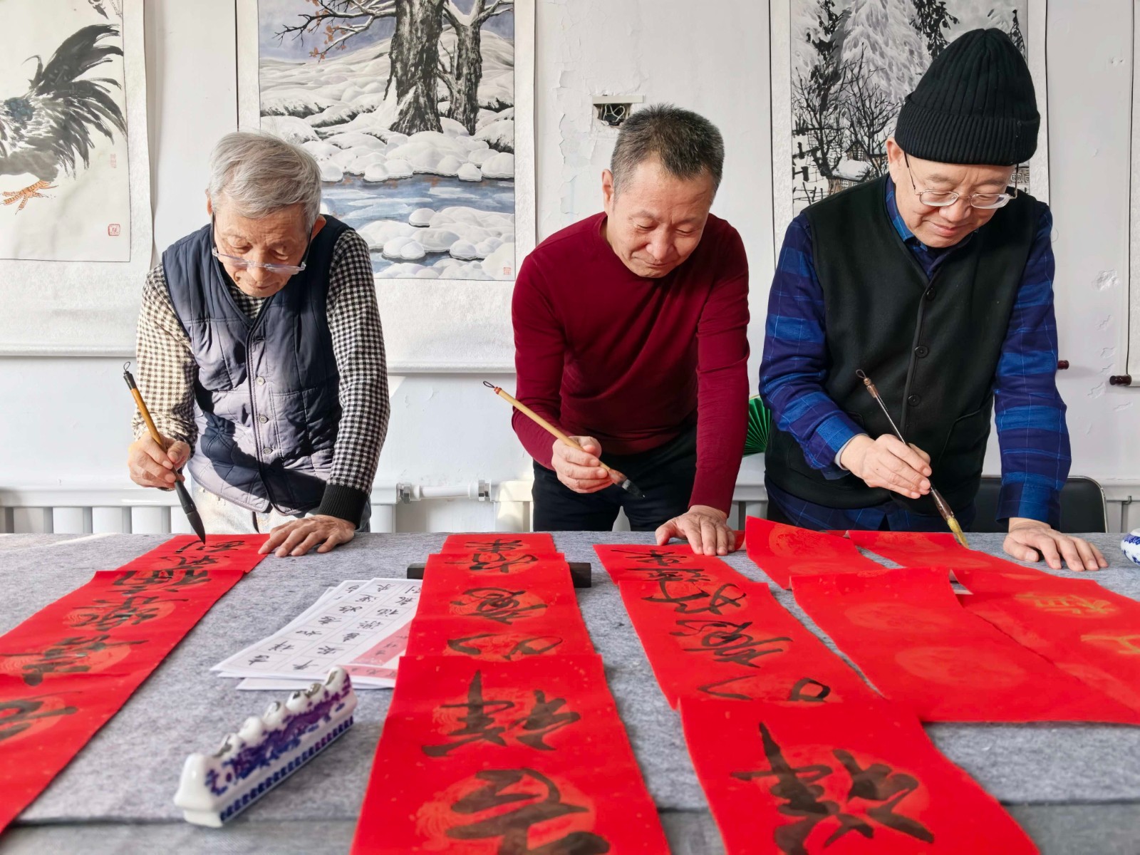 新春將至,年味漸濃。為進(jìn)一步豐富社區(qū)文化生活,助力嫩江市雙鎮(zhèn)南苑社區(qū)走訪慰問工作的開展,2026年1月7日,九三分公司關(guān)工委組織馮善林、姜長福、段慶和、常曉君等九三紅“五老”志愿者,走進(jìn)南苑社區(qū)書畫活動陣地,開展義務(wù)書寫春聯(lián)活動。揮毫潑墨間,一幅幅充滿新春祝福的春聯(lián)與“?!弊周S然紙上,為即將到來的春節(jié)增添了濃濃的喜慶氛圍。