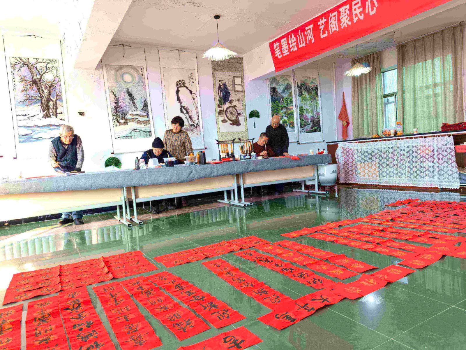 新年伊始,嫩江市雙山鎮(zhèn)南苑社區(qū)將開展走訪慰問、為千家萬戶送春聯(lián)和“?!被顒???紤]到手寫春聯(lián)承載著更濃厚的年味與心意,南苑社區(qū)特邀請九三分公司關(guān)工委“五老”志愿者前來助陣。接到邀請后,志愿者們欣然應(yīng)允,滿懷熱情地投入到書寫工作中。
