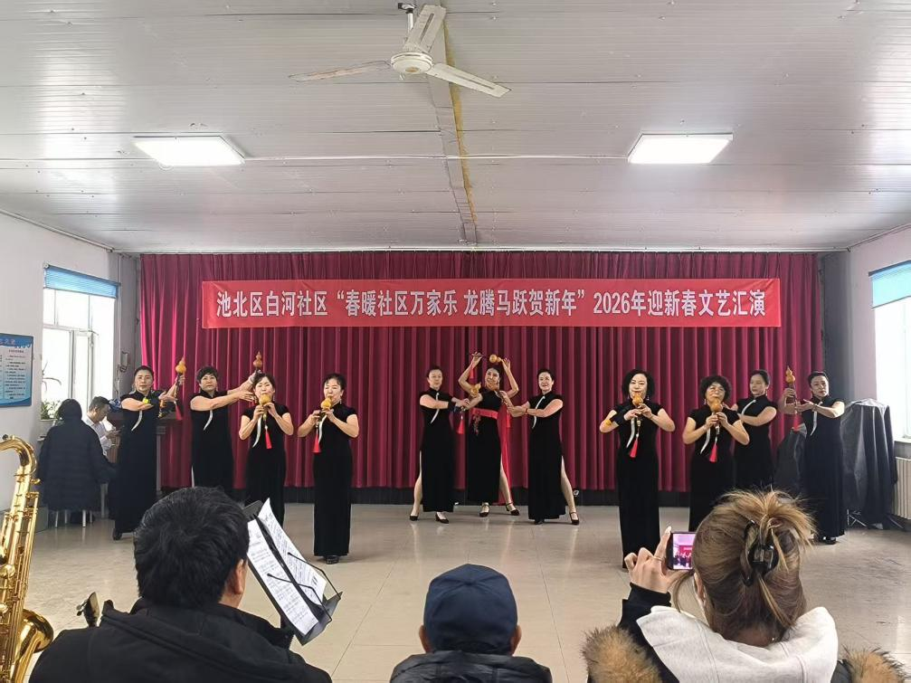 白河社區(qū)迎新春文藝匯演于1月15日在社區(qū)活動室精彩上演。社區(qū)黨員、少年兒童、“五老”志愿者共150余人參加。