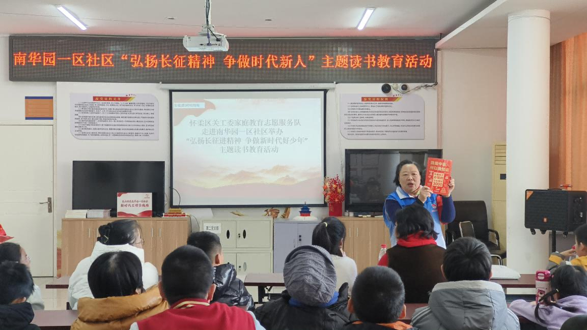 2026年1月21日,懷柔區(qū)關工委家庭教育志愿服務攜手八點心語小屋、星光藝術(shù)團組成教聯(lián)體走進南華園一區(qū)社區(qū),舉辦了紀念長征勝利90周年首場主題教育讀書活動。
