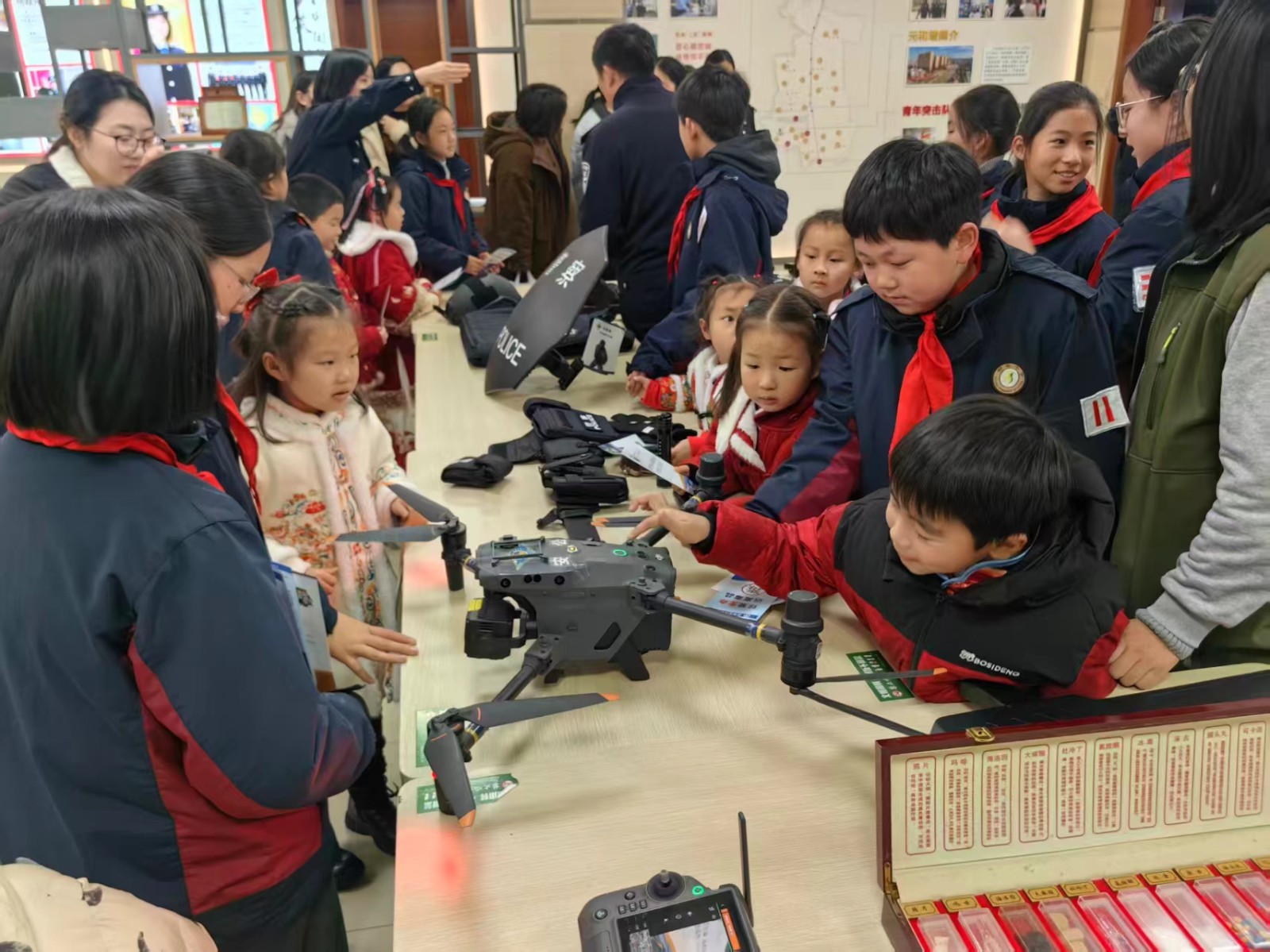 學(xué)生代表向民警獻(xiàn)上禮盒,表達(dá)對公安干警的崇高敬意。隨后,民警通過警用車輛、無人機(jī)動態(tài)演示,警史照片、單警裝備靜態(tài)展示,禁毒知識講解等環(huán)節(jié),為孩子們帶來一場沉浸式警務(wù)體驗(yàn)。孩子們近距離接觸警用裝備,了解警察工作日常,安全防范意識在互動中悄然提升,眼中閃爍著對守護(hù)者的崇敬之情。