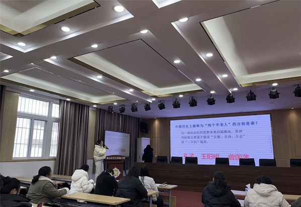 分享會上,周伶俐老師圍繞“知是行之始,行是知之成”的核心要義,從教育視角解讀陽明心學(xué)的當(dāng)代價值。她談到,王陽明強(qiáng)調(diào)的“知行相依”,與教育工作的本質(zhì)高度契合——教育者的“知”是教書育人的初心與理念,“行”則是扎根課堂、關(guān)愛學(xué)生的具體實踐。結(jié)合自身教學(xué)經(jīng)歷,周老師分享了如何將“知行合一”融入日常:針對內(nèi)向?qū)W生耐心引導(dǎo)、為不同層次學(xué)生設(shè)計差異化教學(xué)任務(wù)、以言行一致的示范踐行育人初心,這些真實案例讓抽象的哲學(xué)思想變得可感可學(xué),生動詮釋了“教育的智慧源于事上磨練”的深刻內(nèi)涵。周老師提出,教師踐行“知行合一”,既要在書中汲取教育智慧,更要在實踐中錘煉教學(xué)本領(lǐng),將“致良知”的堅守轉(zhuǎn)化為因材施教的行動,讓教育理念真正落地生根。現(xiàn)場教師認(rèn)真聆聽、積極交流,紛紛表示將以此次分享為契機(jī),把“知行合一”的智慧融入備課、課堂、育人全過程,在理論與實踐的碰撞中提升教學(xué)質(zhì)量。
