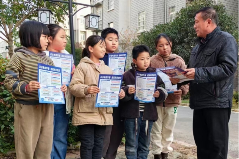 活動(dòng)中“五老”同志組織孩子們發(fā)放防詐宣傳單,與孩子們面對(duì)面解答電詐預(yù)防知識(shí),用通俗易懂的語言向孩子詳細(xì)介紹電信詐騙使用多種詐騙手段,告訴孩子們提高警惕,請(qǐng)勿輕信、貪財(cái)、轉(zhuǎn)賬匯款,牢記“三不一多的原則。若發(fā)現(xiàn)上當(dāng)受騙,迅速向當(dāng)?shù)毓矙C(jī)關(guān)報(bào)案。